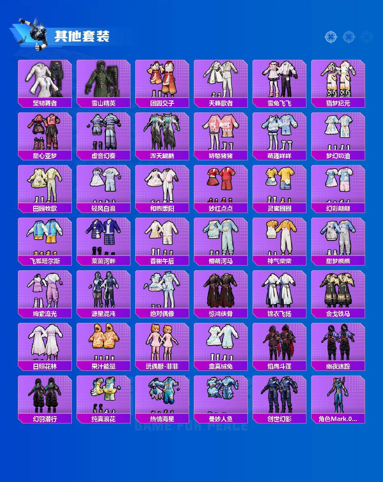 【热门品类】:粉装-音爆索尼克,套装-奇异狩猎者,套装-龟仙人,套装-暗影哥特,套装-粉红小猪,角色-Mark.06
