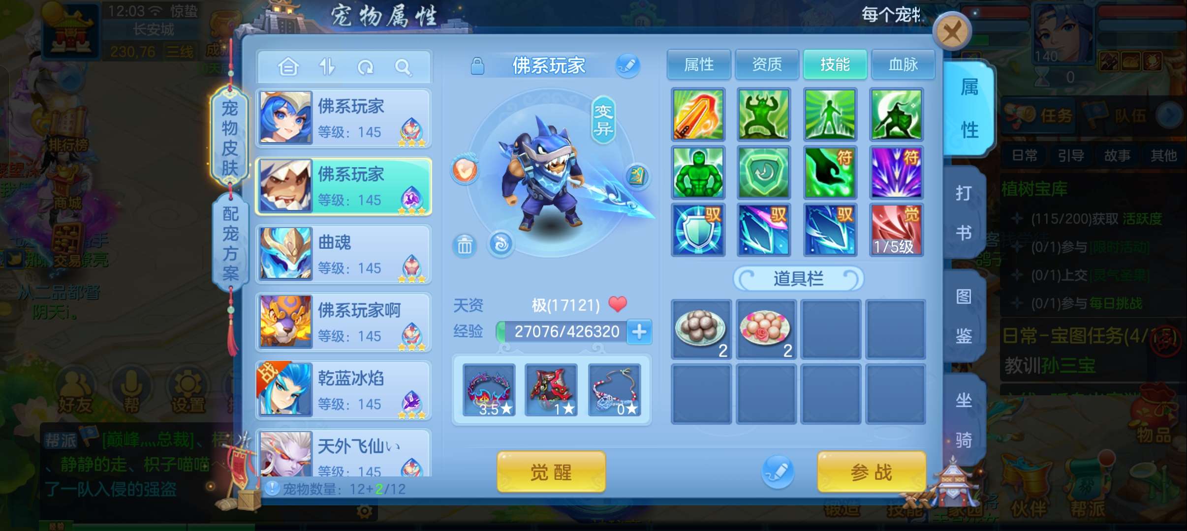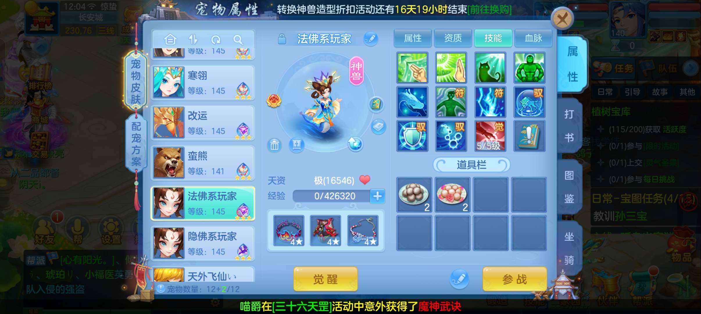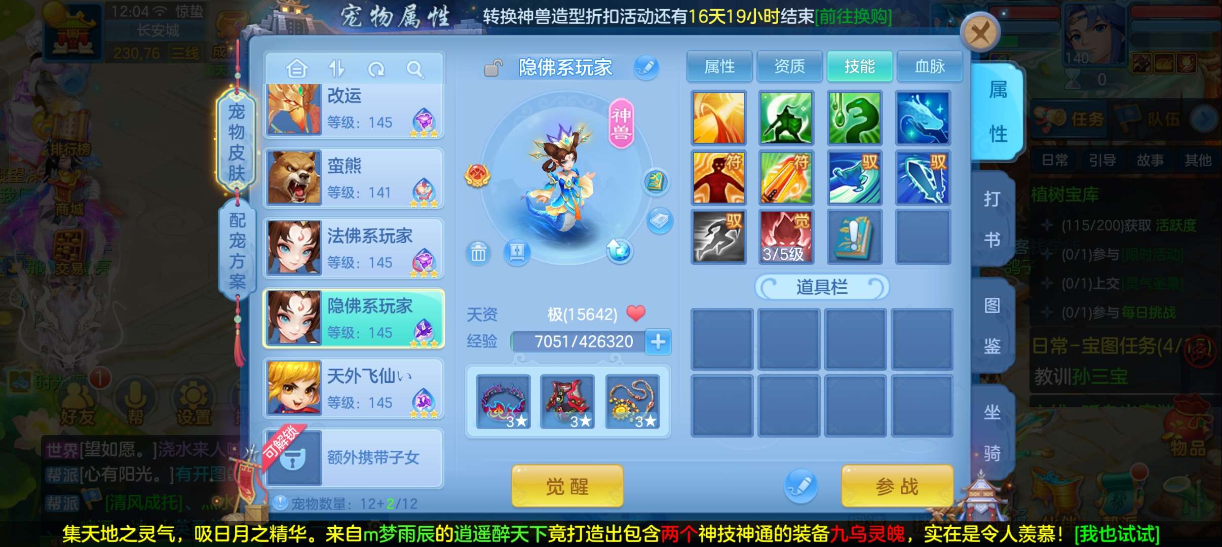 今年勇满配140普陀4个13段带星,6个皮肤,双神兽蛇,高级坐骑