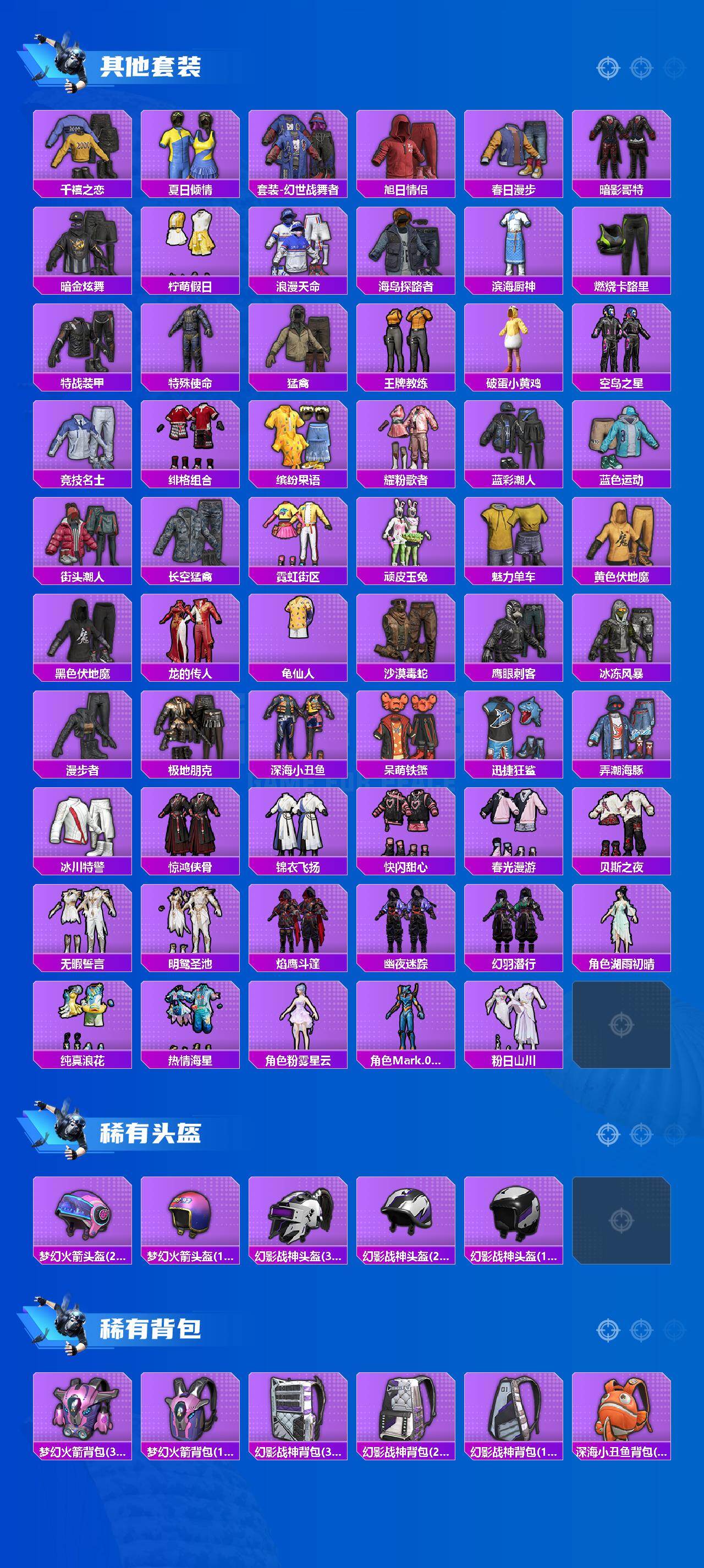 【热门品类】:套装-浪漫天命,套装-都市猎人,套装-深海小丑鱼,套装-忍者信条,套装-龟仙人,套装-暗影哥特,角色-Mark.06