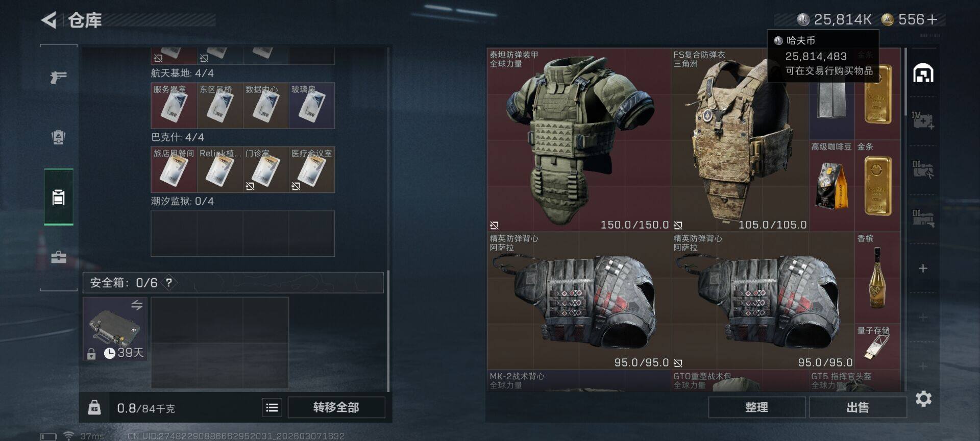 总资产(M):81M/哈夫币(K):25814K/传说枪皮数:36/全面战场等级:50_段位:尉官/烽火地带等级:60_段位:黑鹰/