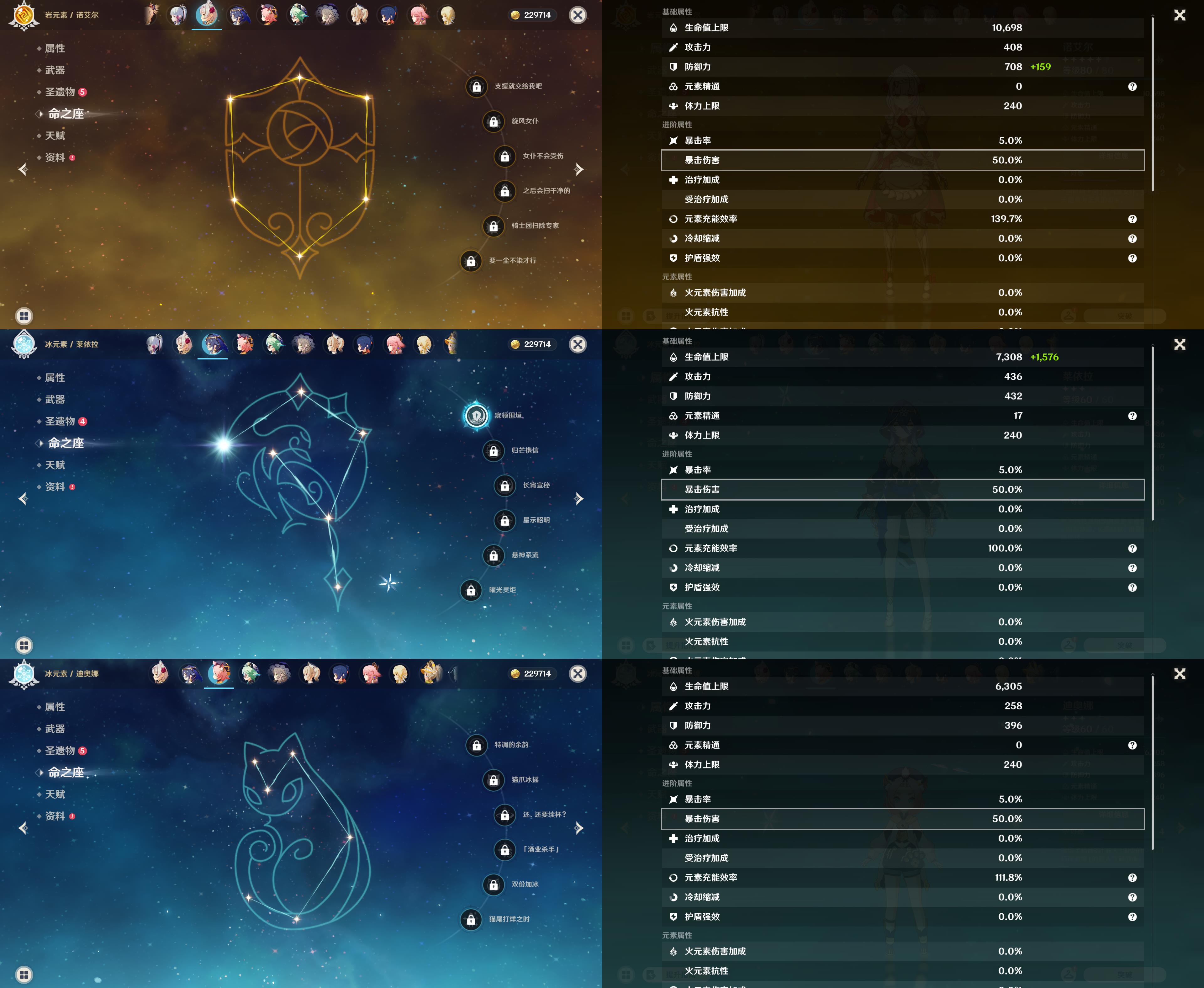 55级/13黄/女主/9个五星角色/3个五星武器/1命莫娜/