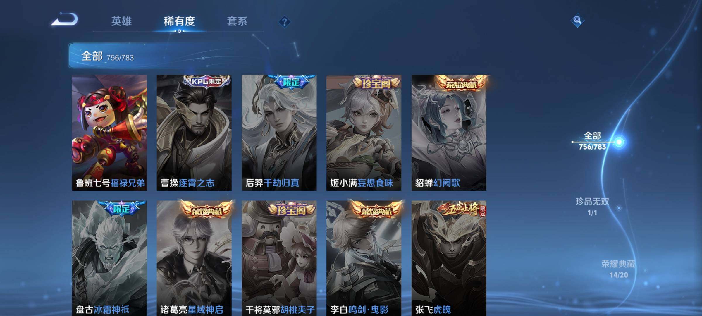 可换绑【无双V10,16万流光积分,满生肖限定,小国标嬴政,万战金标花木兰苏烈,满无双,满珍品,传说141差一个,马年套,马年限定三款灵宝,神骥仙使主页装扮,貂蝉繁花,无正违规,可转区】 29王者印记 15星传说 7天幕 1小兵 109按键 满级铭文 可二次BX5134 安卓Q-V11-756皮肤-14典藏皮肤-1典藏英雄-1珍品无双-14无双-10珍品传说-141