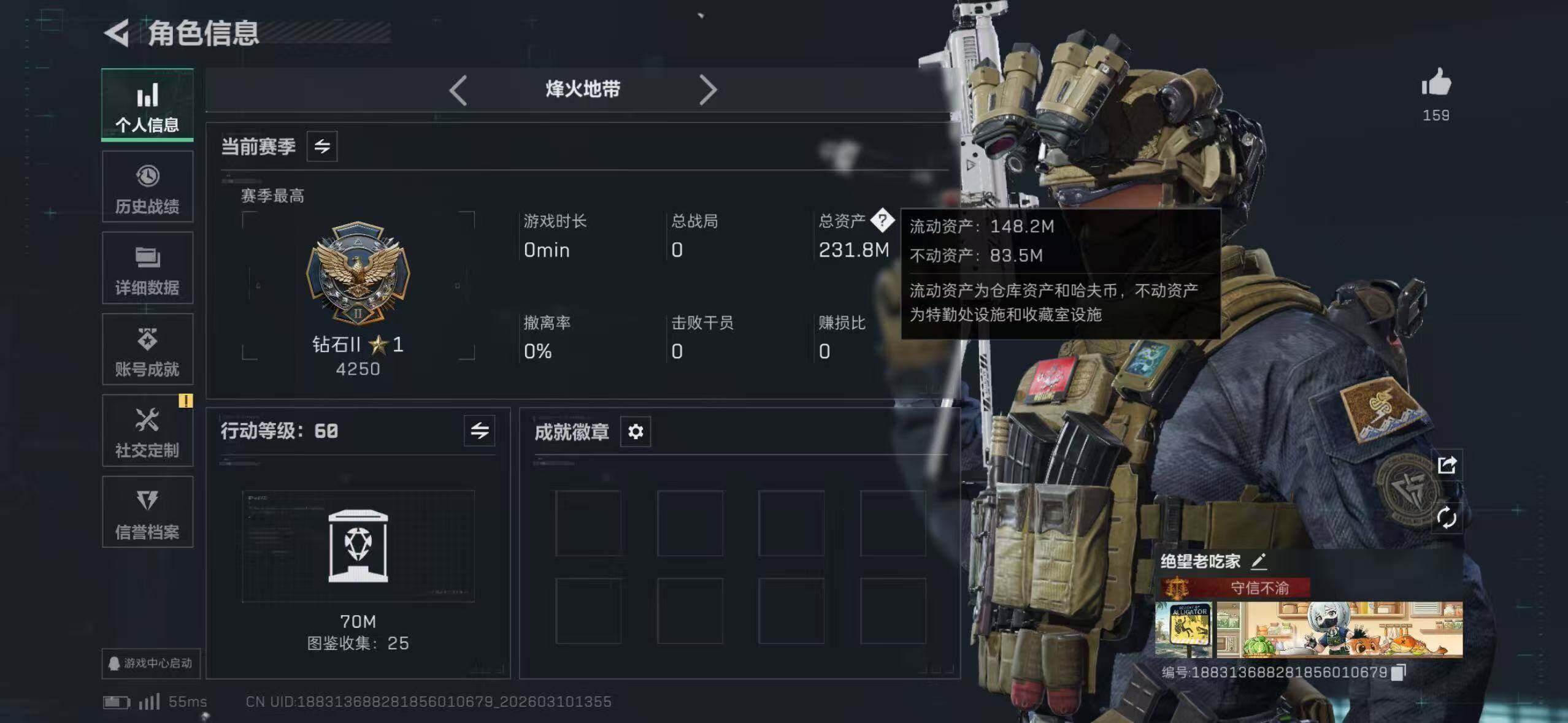 【SJ1328】232m总资产-1250k哈伏币-60烽火等级-钻石-2战场等级-无军衔