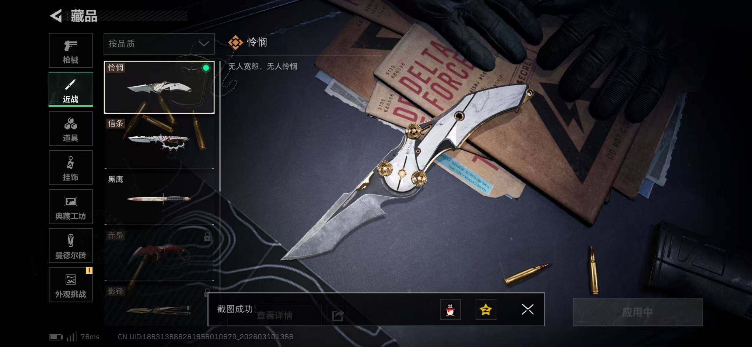 【近战皮肤】:近战-信条,近战-怜悯,近战-黑鹰