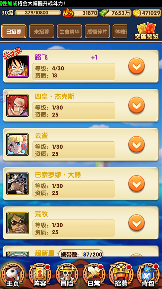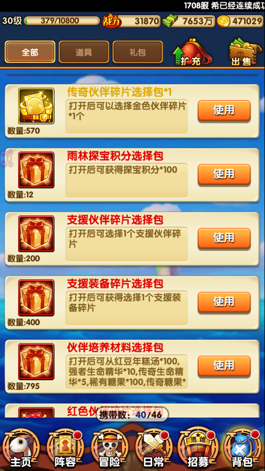 单人上阵 未绑定 未充值 未用礼包 V3 没看错带现成6金伙伴包括最强金伙伴红发和凯多哦 外带自选570金伙伴碎片(可以自选完整3金多哦 也可以全选一人比如金红发哦) 外带自选支援伙伴包 装备包 自选