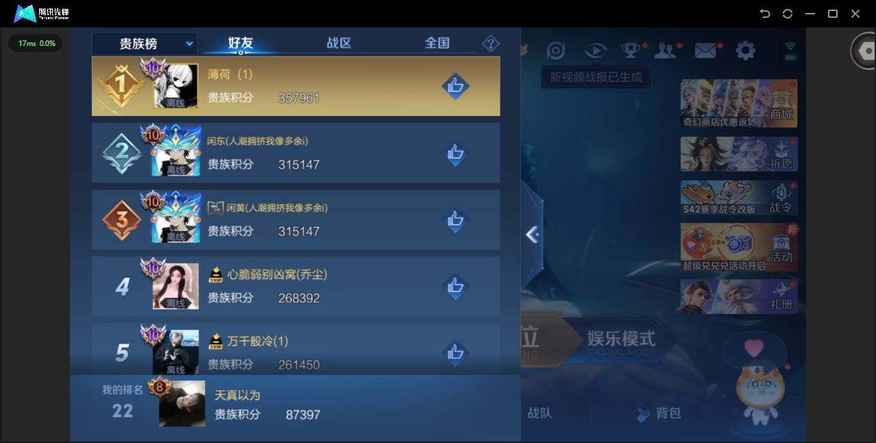 【王者荣耀】用户273*****e