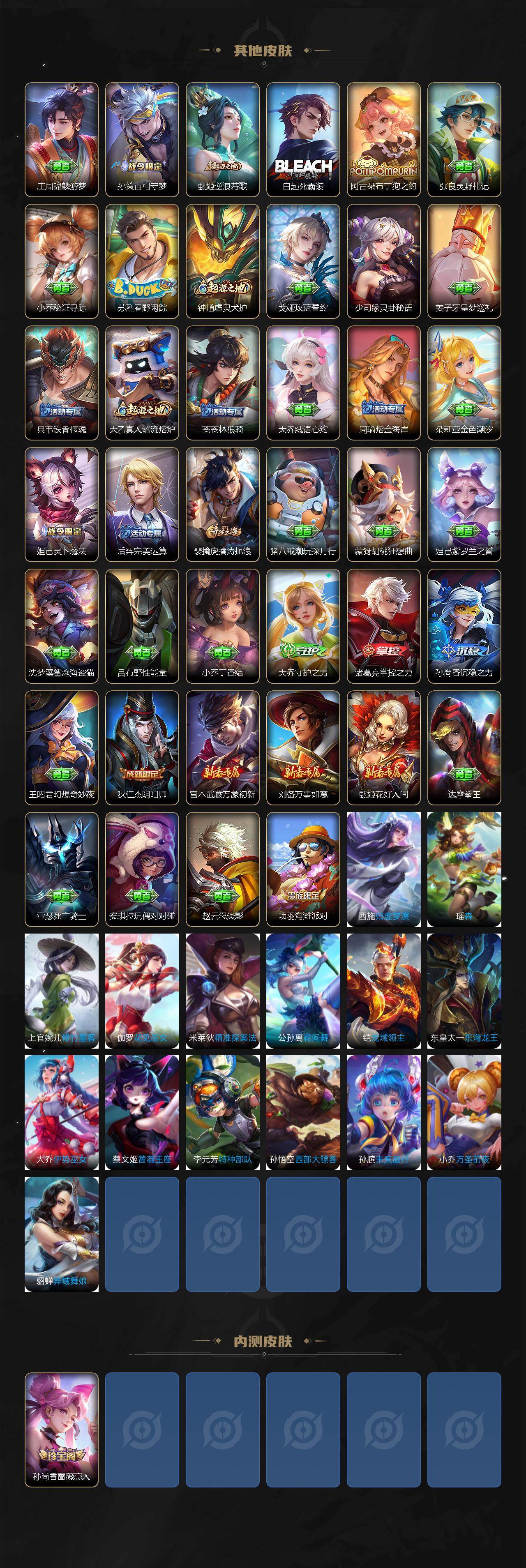 【限定皮肤】:大乔绒语心约,狄仁杰阴阳师,赵云皇家上将,