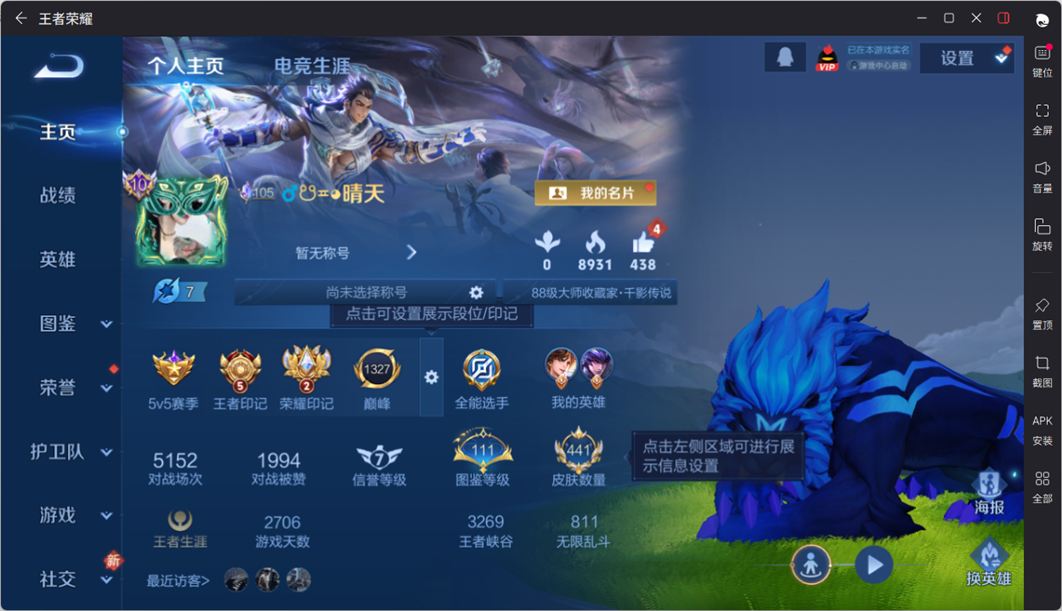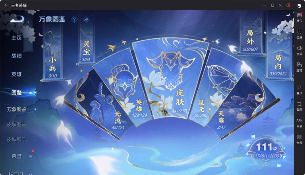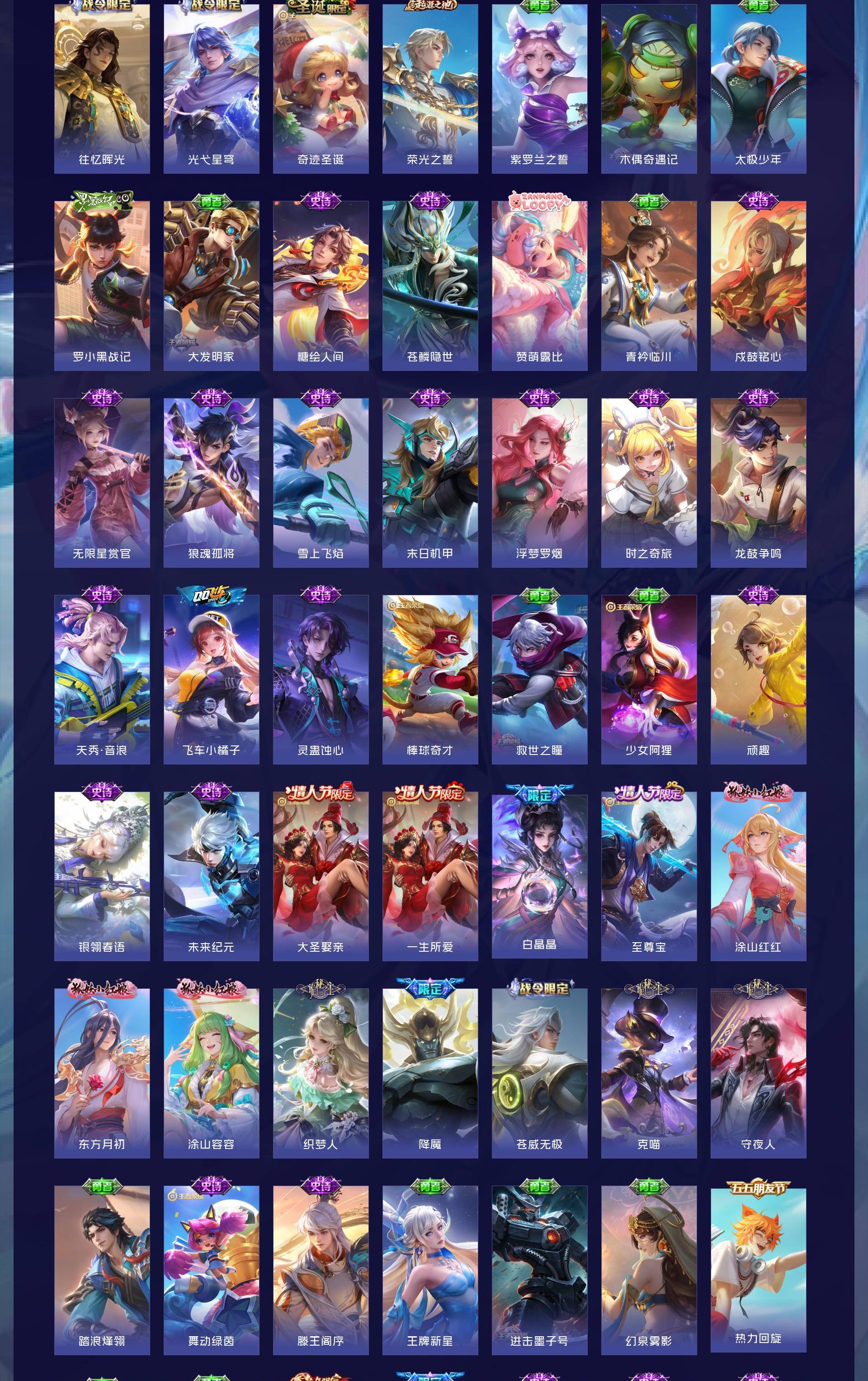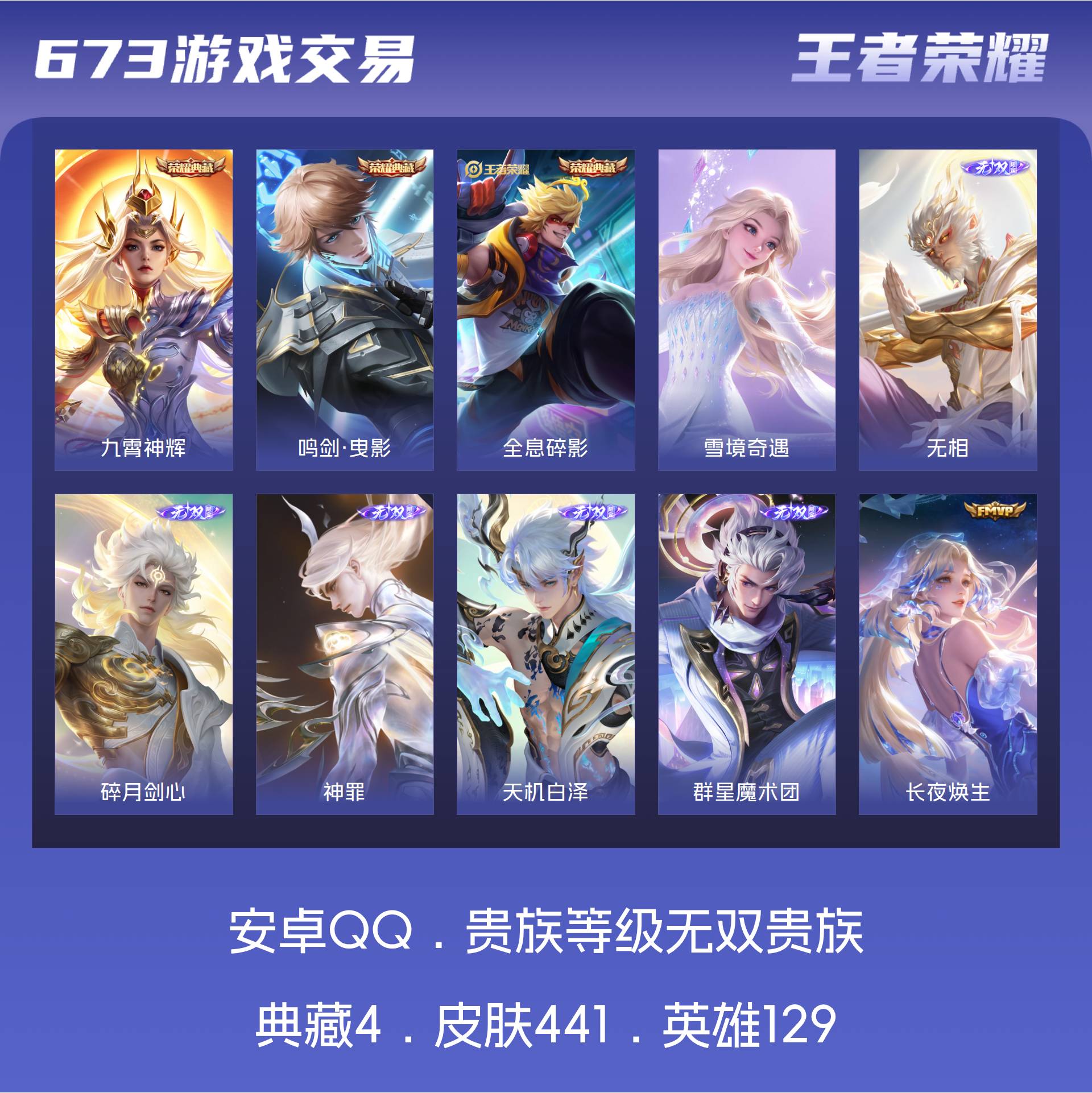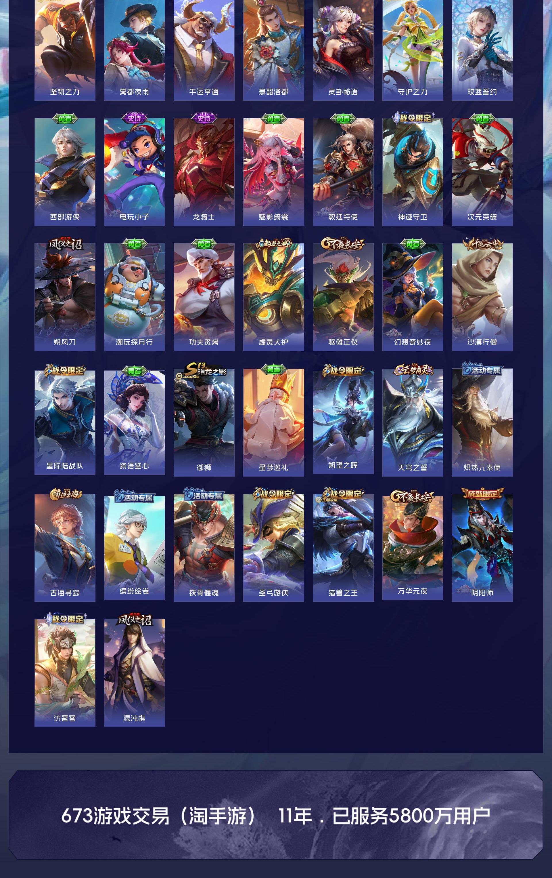 无双贵族 皮肤441 英雄129 无双王者 荣耀典藏4 无双皮肤6 传说65 其他皮肤373