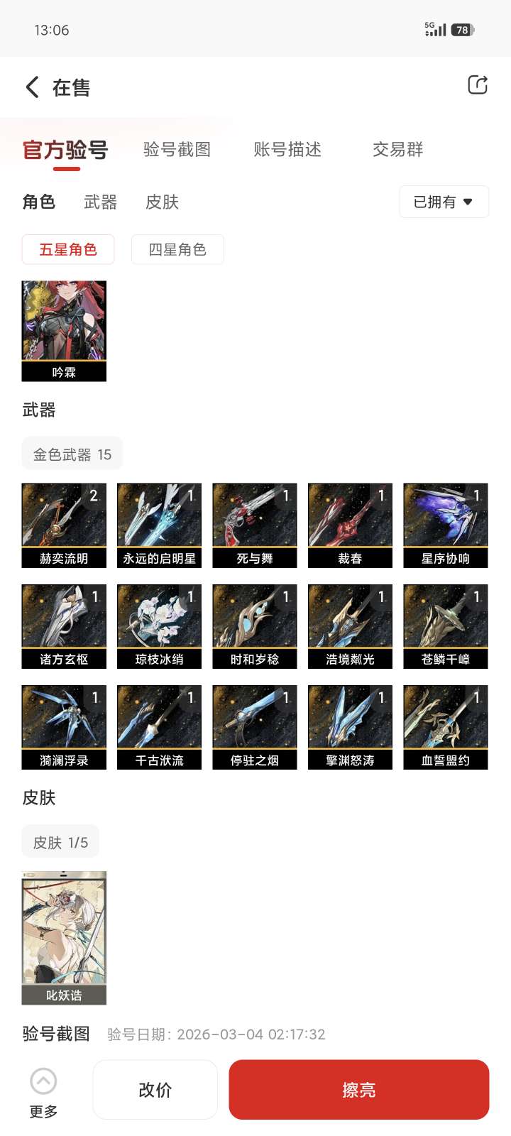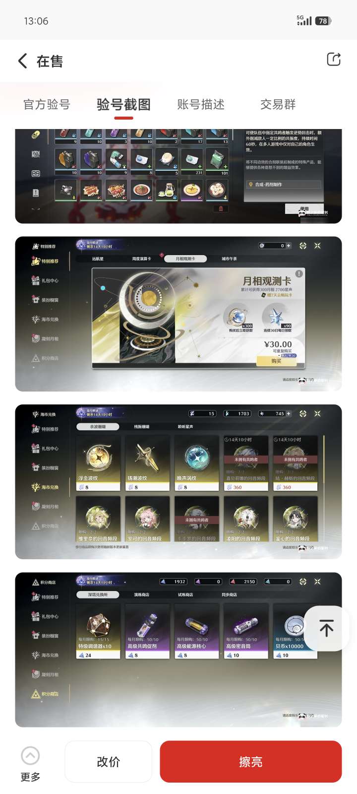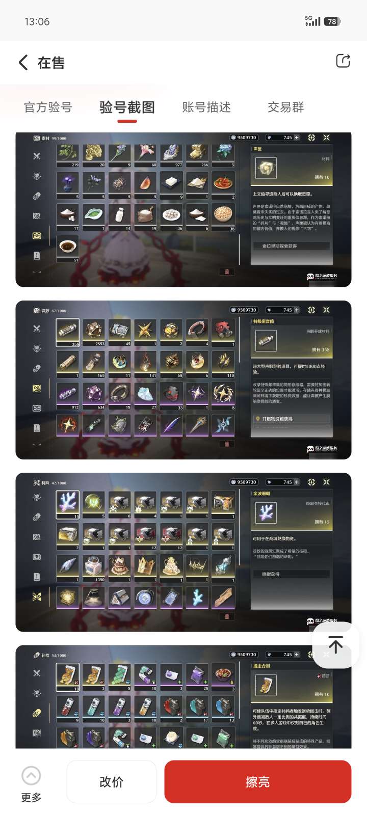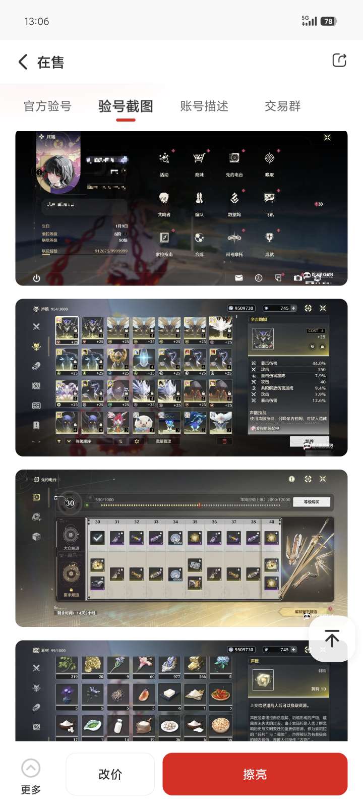 老登号100开头的,除了星声不一样其他的都有一样边玩边卖