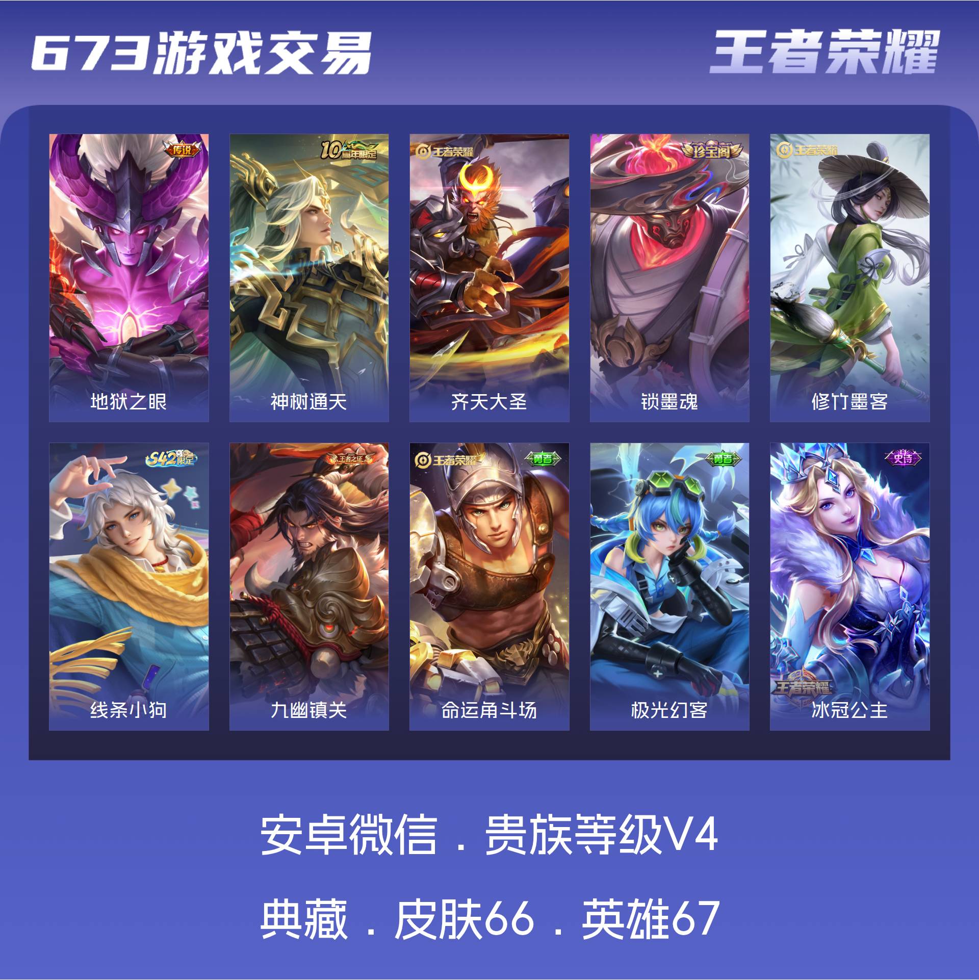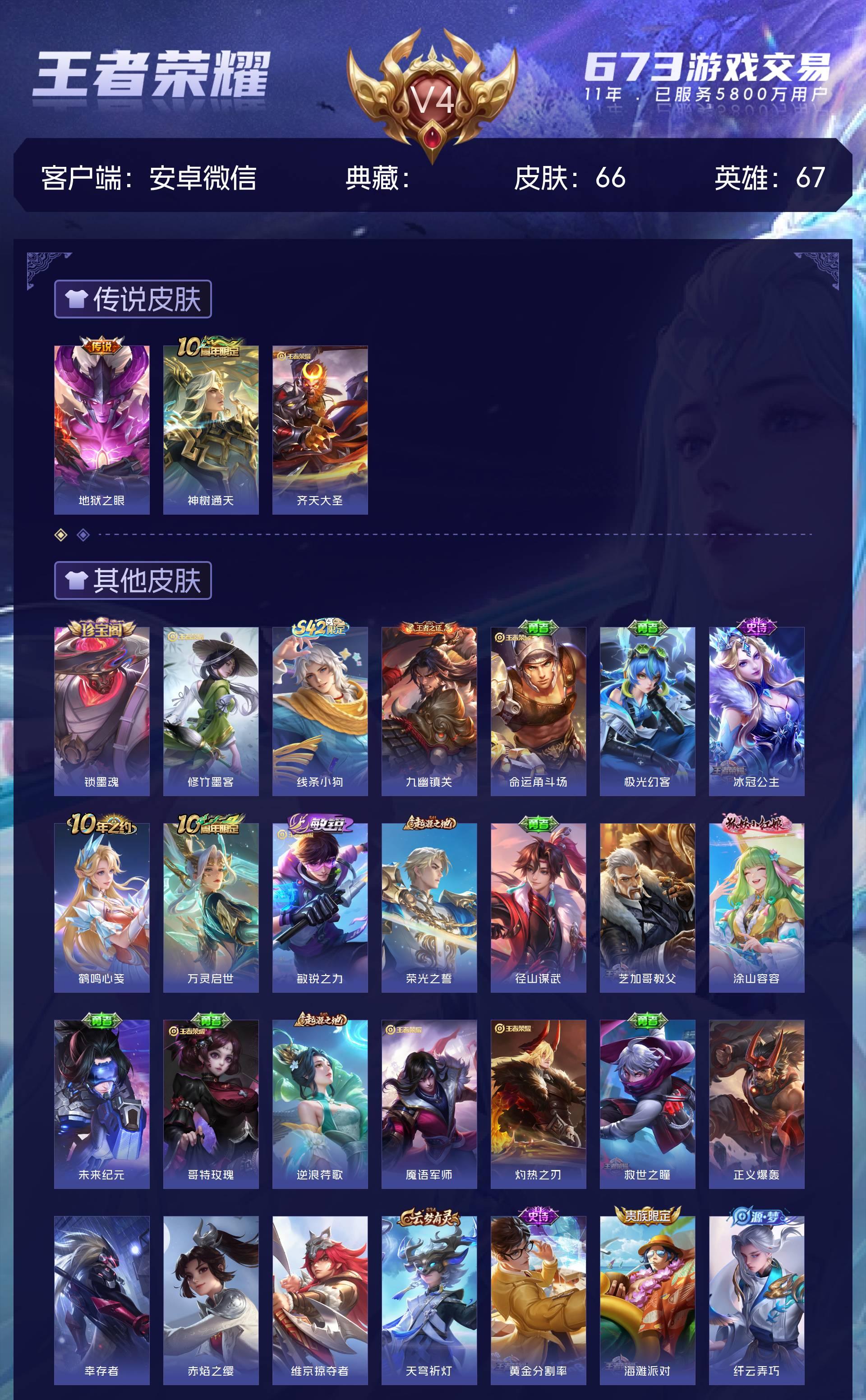 V4 皮肤66 英雄67 至尊星耀 传说3 其他皮肤69