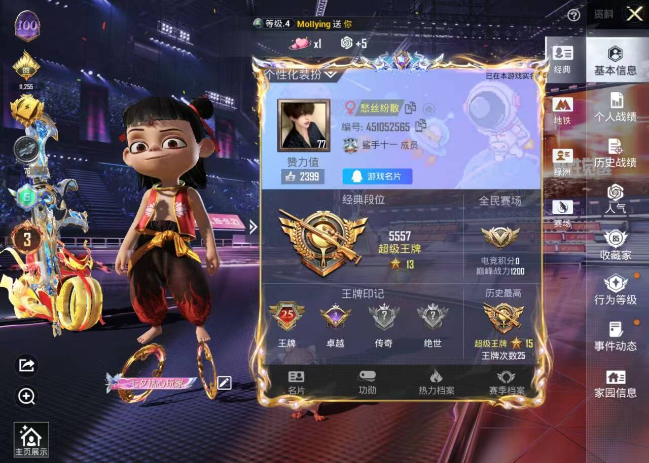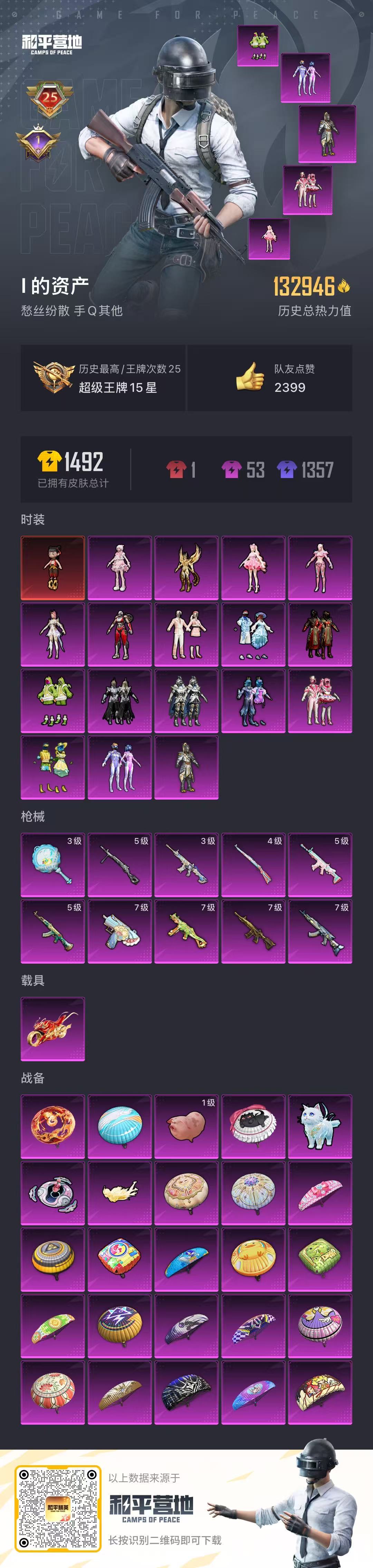 25王牌印记-1红装-17粉装-10特效枪-1载具-热力值-304套装-396枪皮-1卓越印记