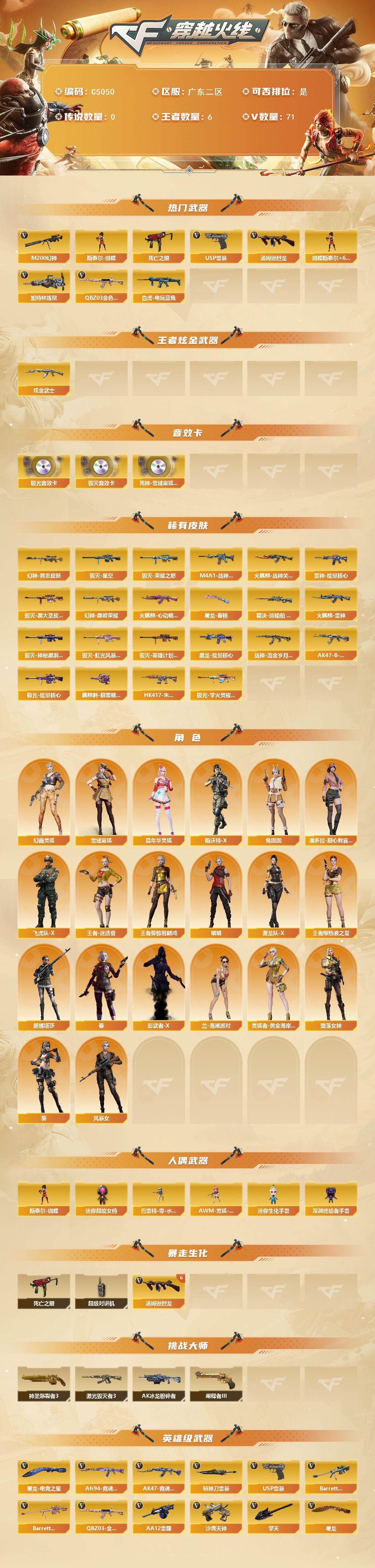 【C5050】广东二区-79V-6王者武器数-1炫金武器数
