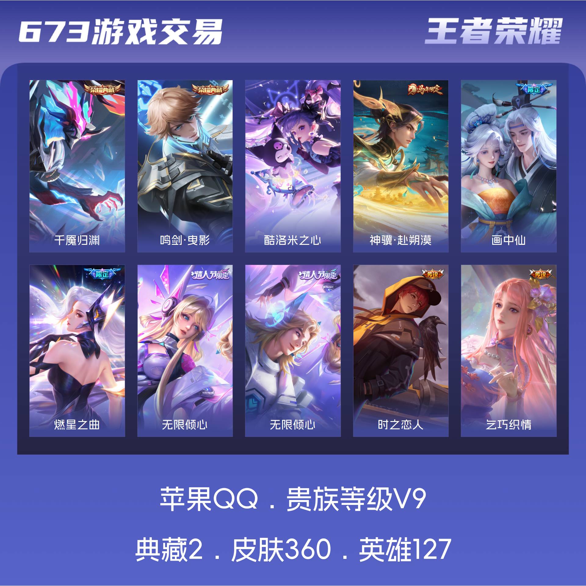 苹果QQ/至尊星耀/360皮肤/127英雄/2典藏/0珍品无双/0无双/1珍品传说/25传说/103