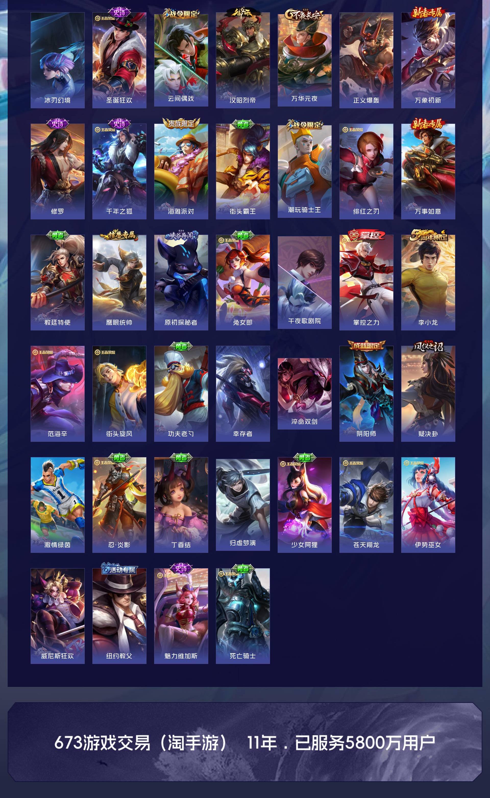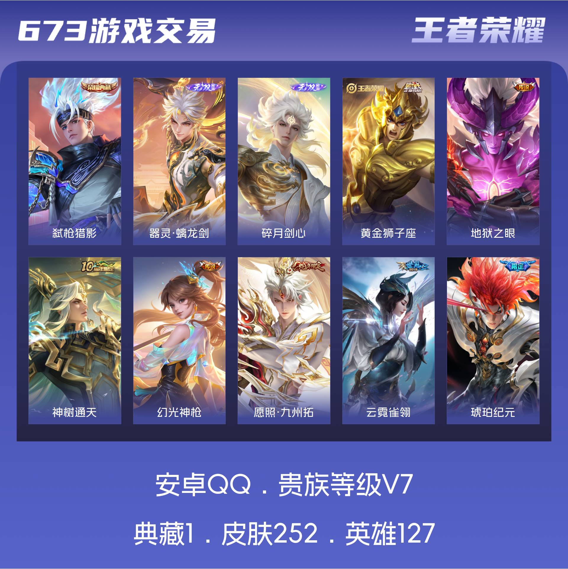 安卓QQ/最强王者/252皮肤/127英雄/1典藏/0珍品无双/2无双/0珍品传说/13传说/66史