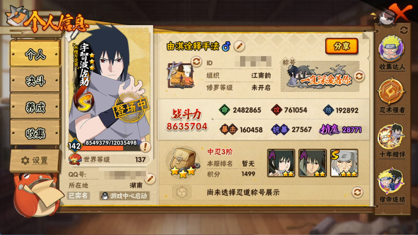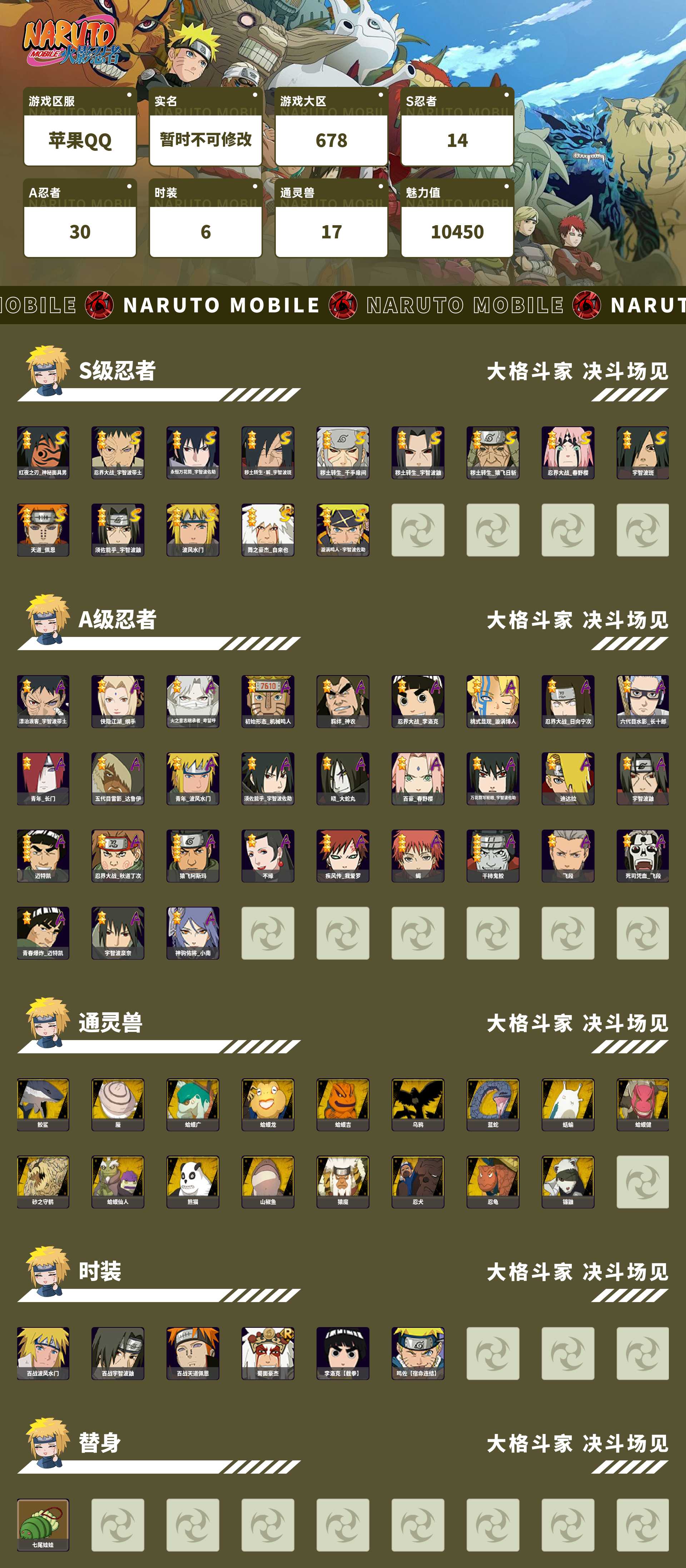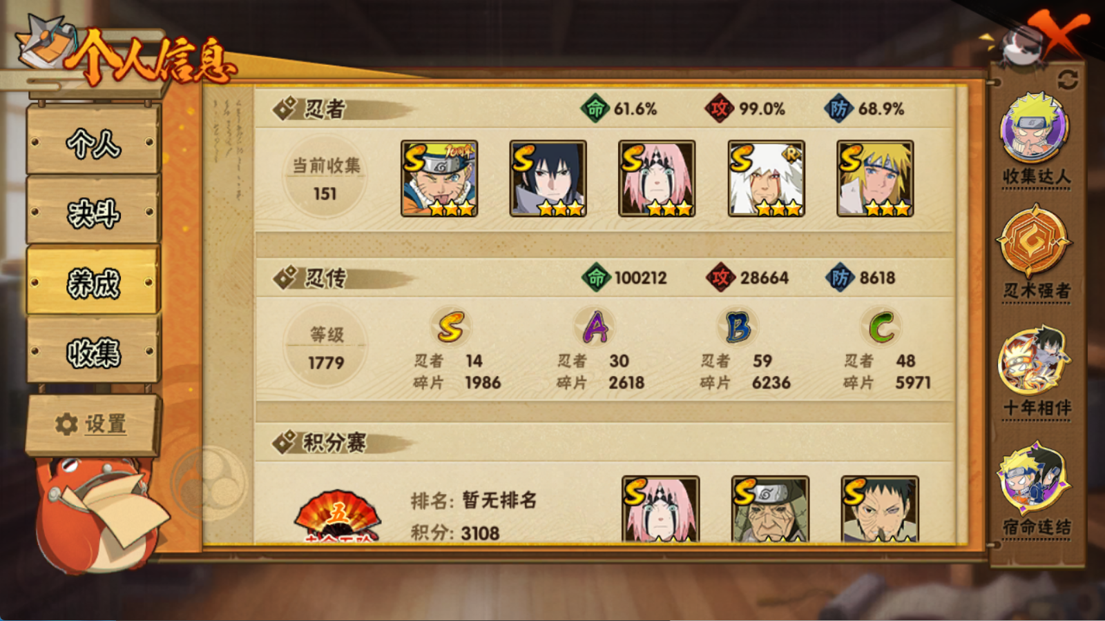 863W战力破面红夜带土紫狗14S+飘带侠隐纲手3个198直