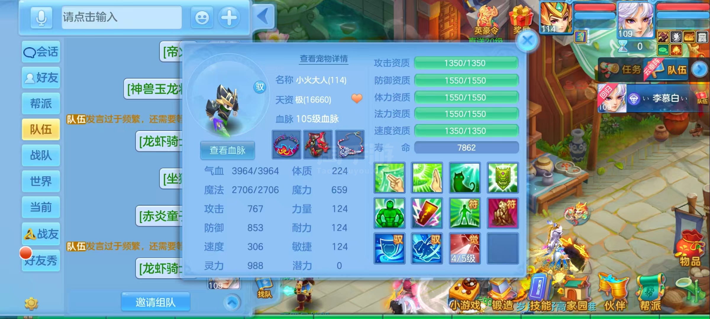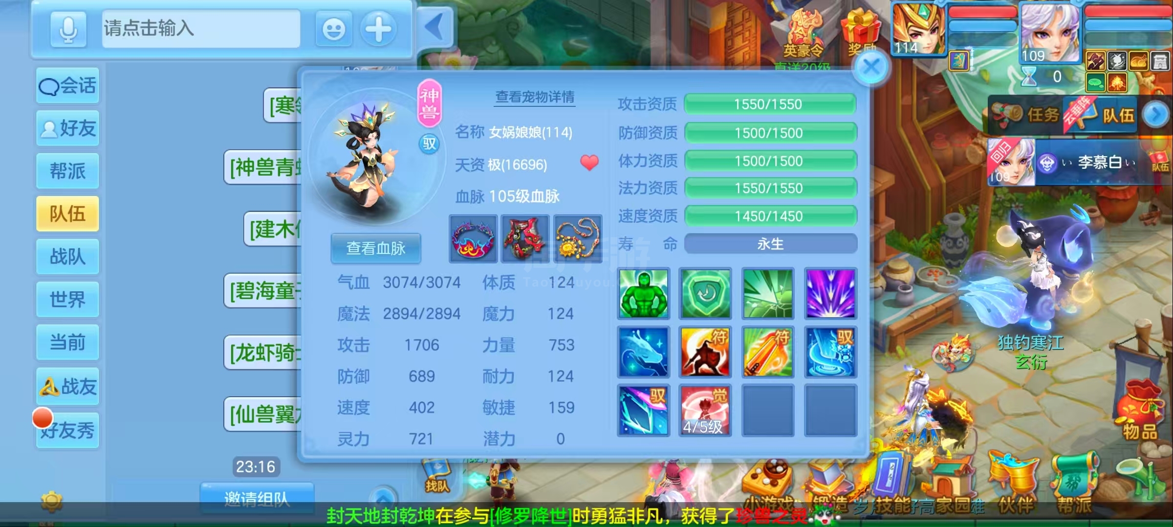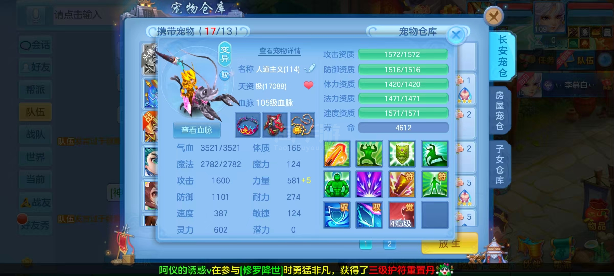 一仙两内胆神,玉龙,蛇,专属好几个,满兽魂10个左右,皮肤多多,截图属性只有一个低级点化,属性,自己算就知道了,