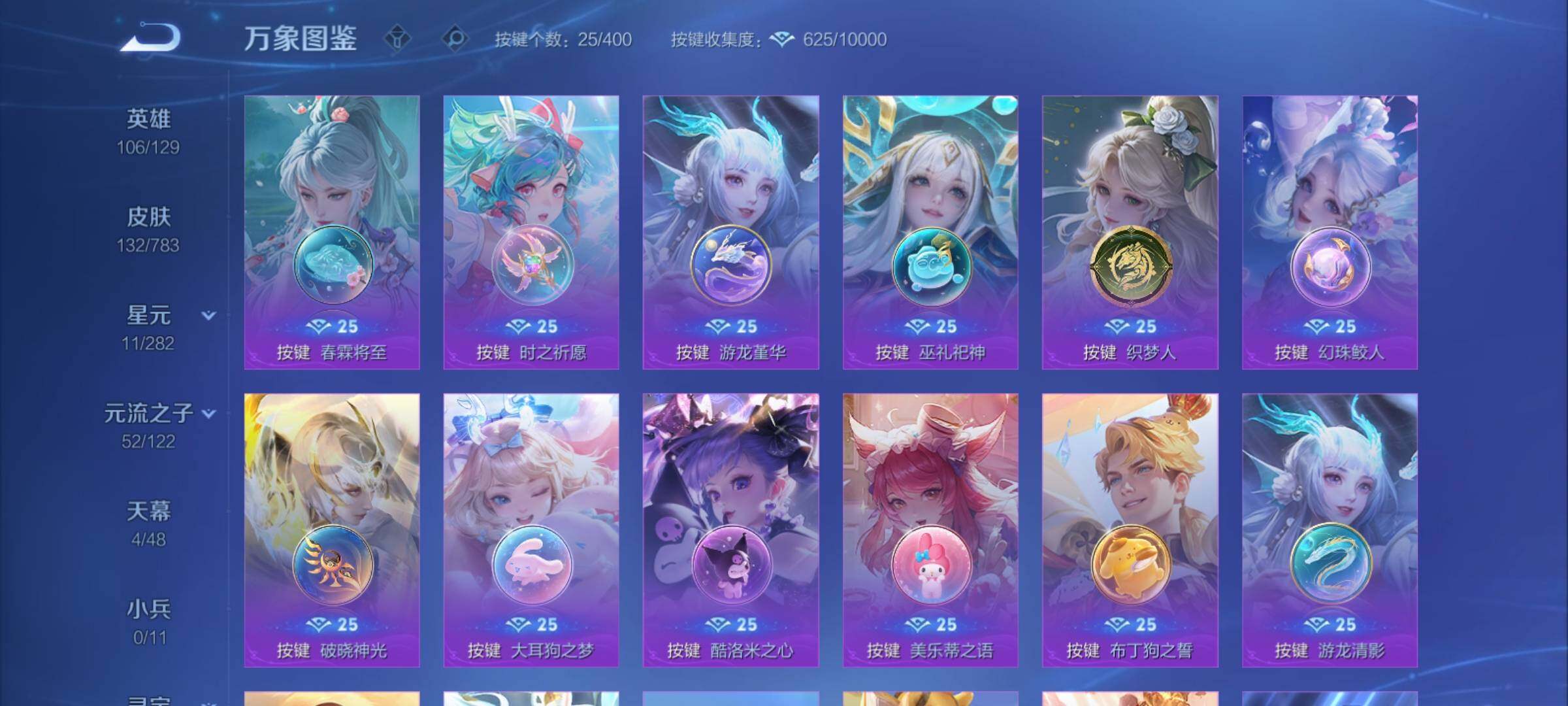 可换绑【清一色女皮号·精品女号·瑶典藏·瑶无双·安琪拉瑶双珍品·马年朵莉亚·朵莉亚心动手记·龙年孙尚香·瑶时之祈愿·龙年安琪拉·紫瑶·25个女皮按键·Kuromi时间天幕·Hello Kitty天幕·财神纳福天幕·棉花糖聚会天幕】25按键 4星传说,1王者印记,60五级铭文 可二次CD18127 安卓Q-V8-132皮肤-1典藏皮肤-1无双-2珍品传说-17传说-