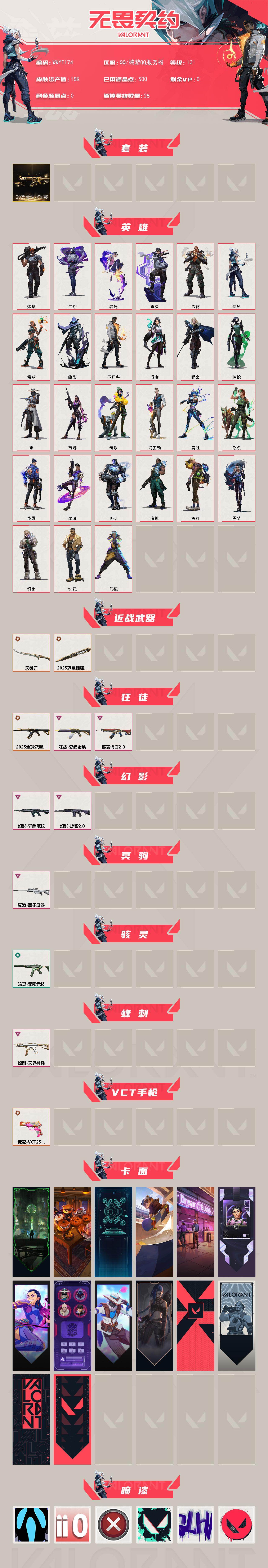 【WWYT174】终极*4/卓越*6/皮肤*15/等级*131/段位:青铜/2025全球冠军赛套装/幻棱/炼狱/维斯/暮蝶/钛狐/壹决/铁臂/捷风/雷兹/幽影/不死鸟/贤者/猎枭/蝰蛇/零/芮娜/奇乐/尚勃勒/霓虹/斯凯/夜露/星礈/K/O/海神/盖可/黑梦/钢锁/近战武器-2025全球冠军赛 蝴蝶刀/近战武器-天御刀/狂徒-2025全球冠军赛/狂徒-般若假面//2.0/狂徒-紫阙金琅/幻影-异鳞魔蛇/幻影-掠影//2.0/冥驹-离子武器/骇灵-无限竞技/蜂刺-天界神兵/标配-VCT25 x F