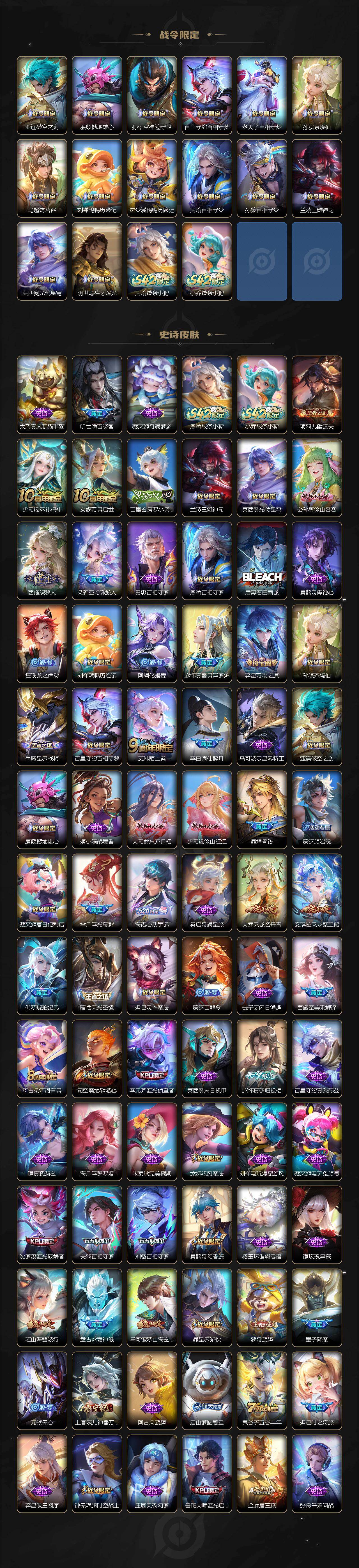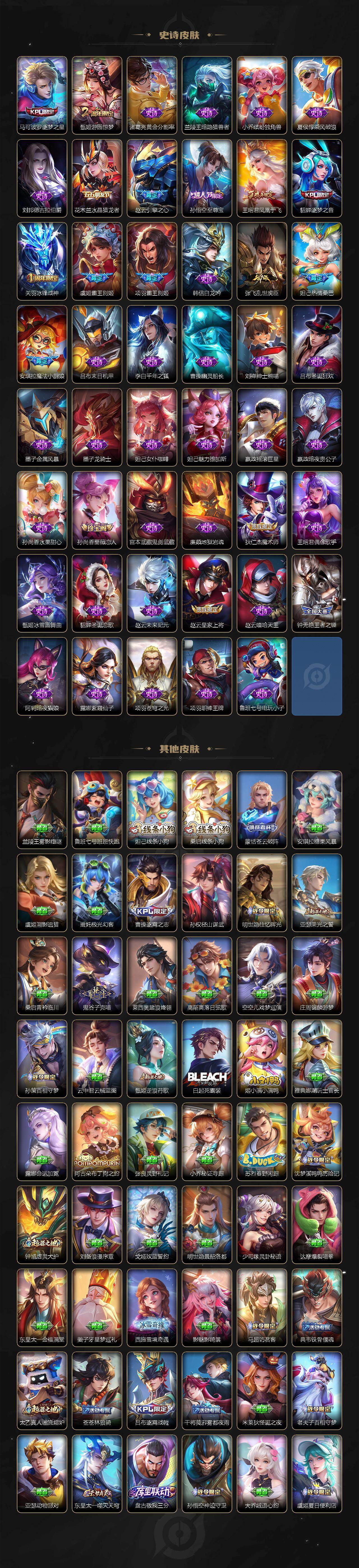 【英雄全皮】:赵云全皮,妲己全皮,刘禅全皮,扁