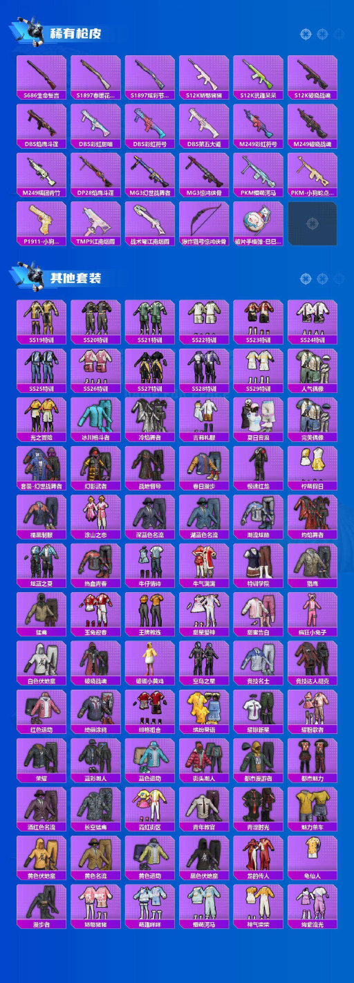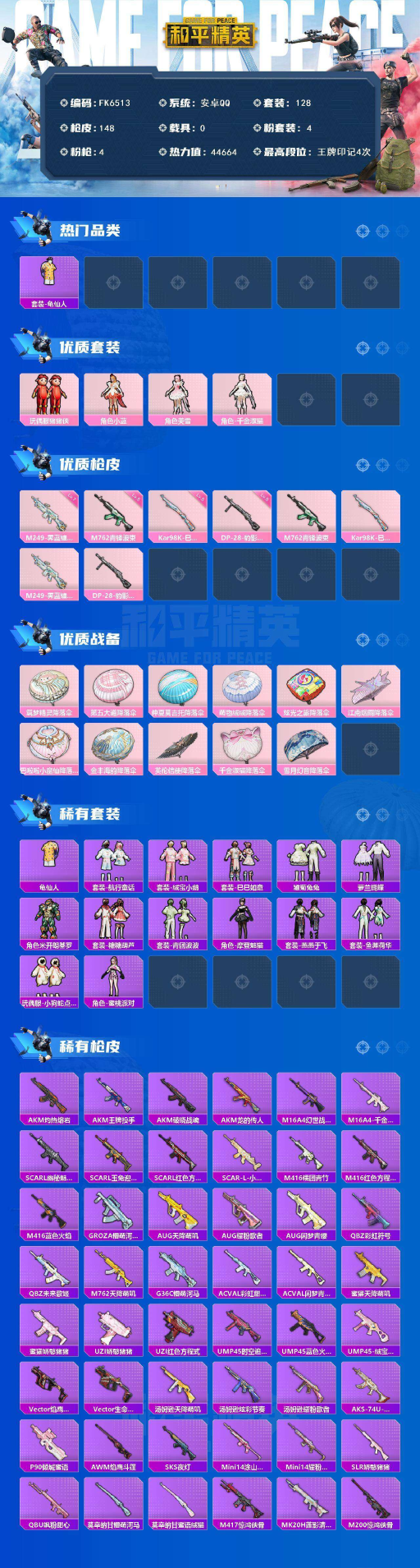 号-4粉装4特效枪-玩偶服-猪猪侠,角色-小蓝,角色-美雪,角色-千金淑猫 七级M249-霁蓝缠春 游戏等级55】安卓 手Q-4粉装-4特效枪-0载具-0粉色飞行器-44664热力值-4王牌印记-128套装-148枪皮 【热门品类】:套装-龟仙人 【粉色套装】:玩偶服-猪猪侠,角色-小蓝,角色-美雪,角色-千金淑猫 【粉色枪皮等级】:M762-青锋波束(五级),Kar98K-巳