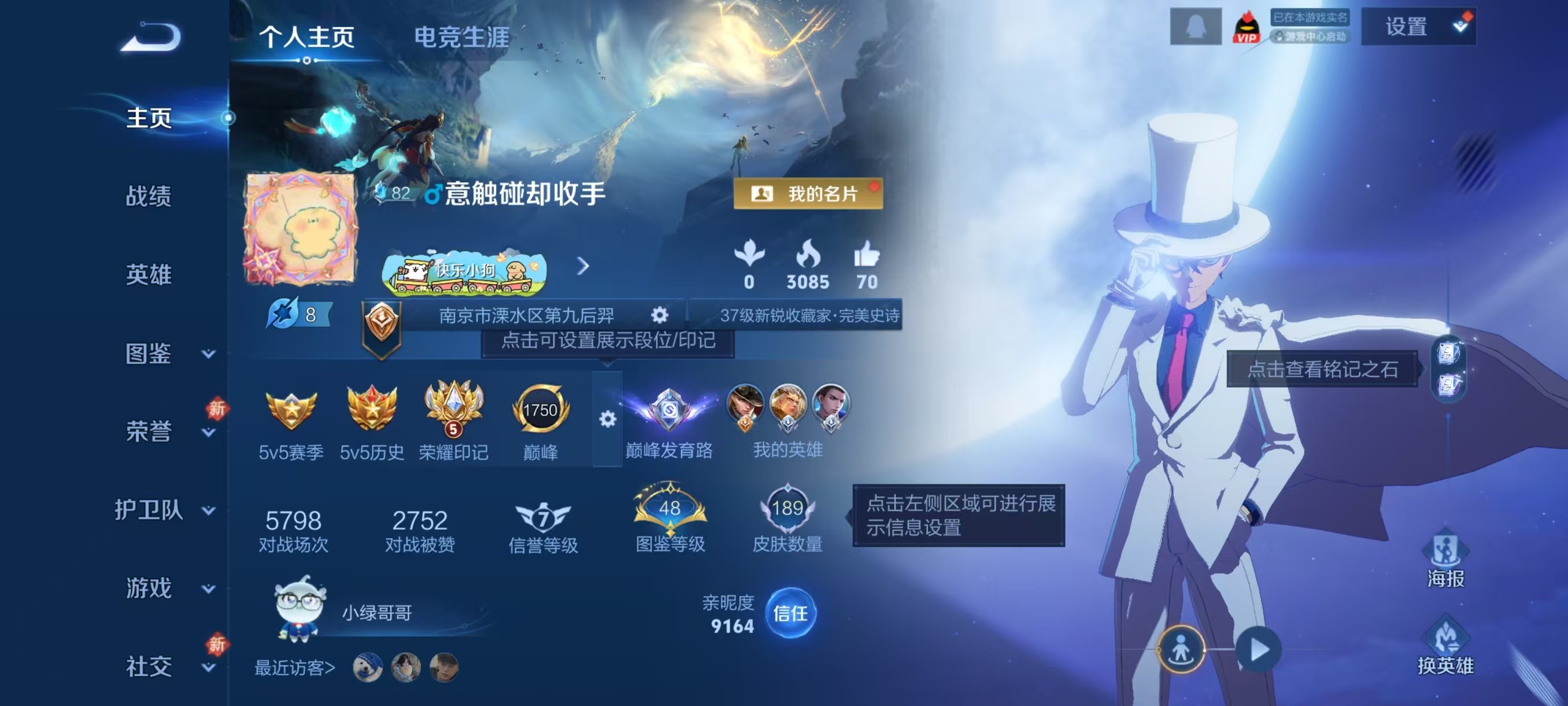 V7 皮肤189 英雄127 最强王者 荣耀典藏1 无双皮肤1 珍品传说2 传说10 其他皮肤182
