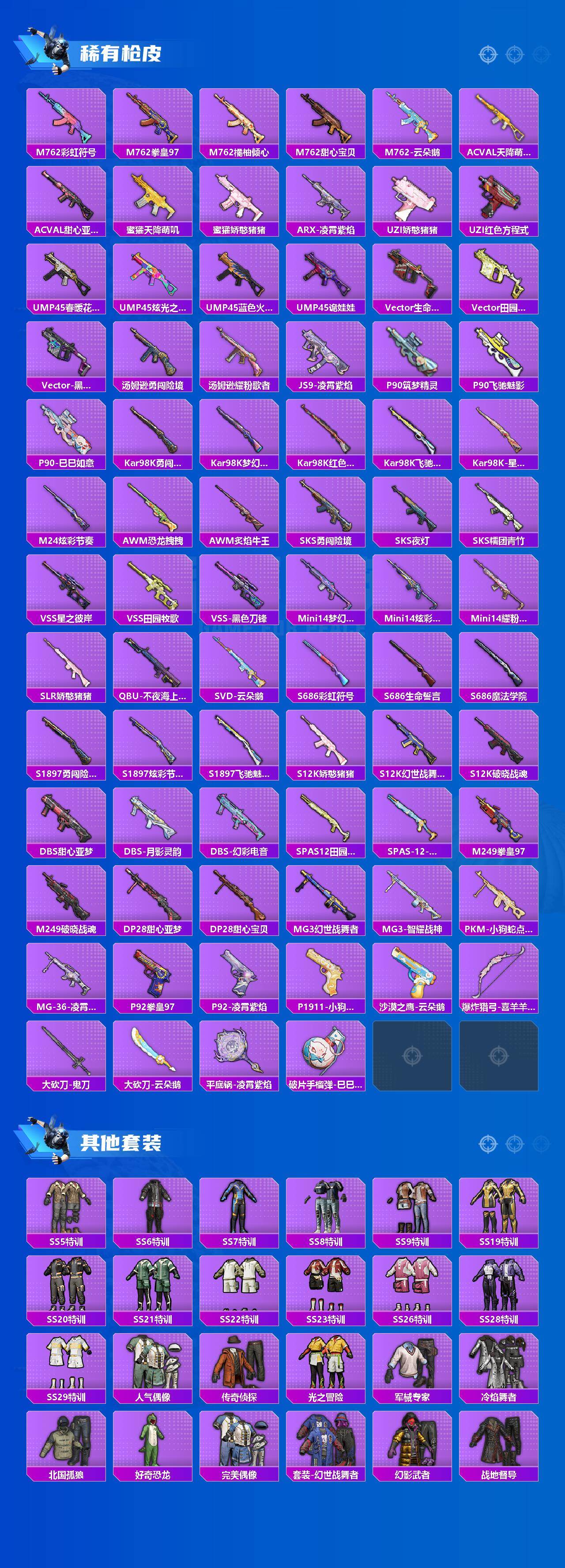 【粉色枪皮等级】:Kar98K-巳巳如意(五级),Mk14-福马献瑞(一级)