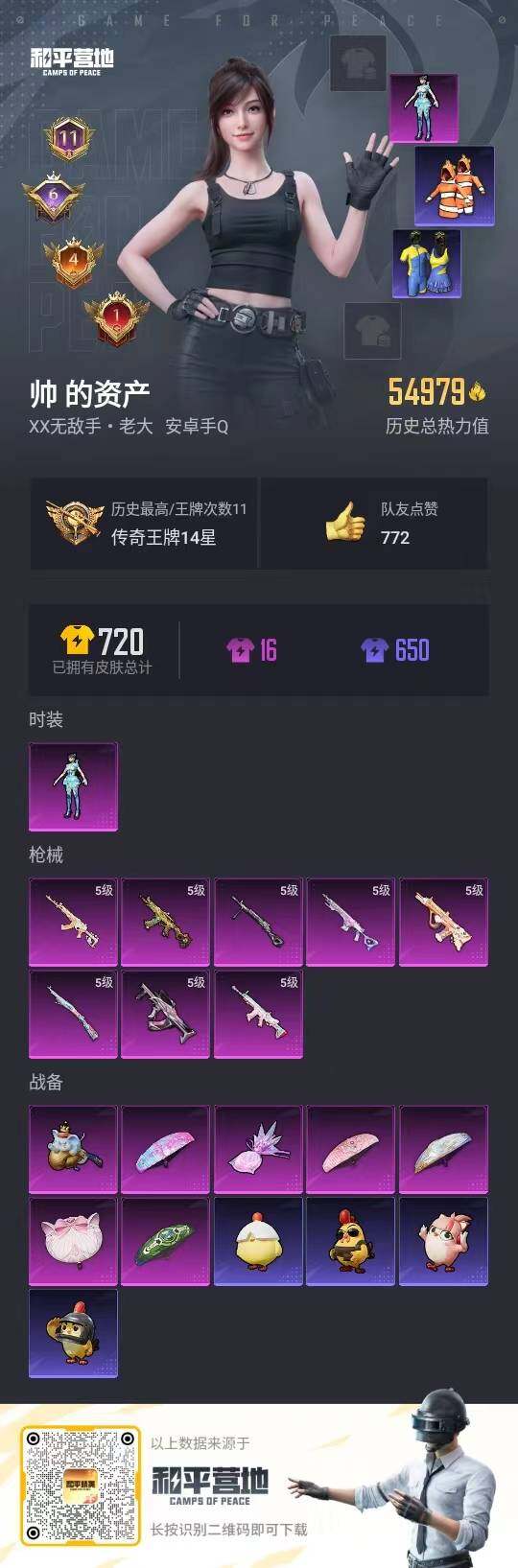 【特价出售/店主推荐】安卓 手Q-1粉装-8特效枪-0载具-2粉色飞行器-54979热力值-11王牌印记-139套装-203枪皮