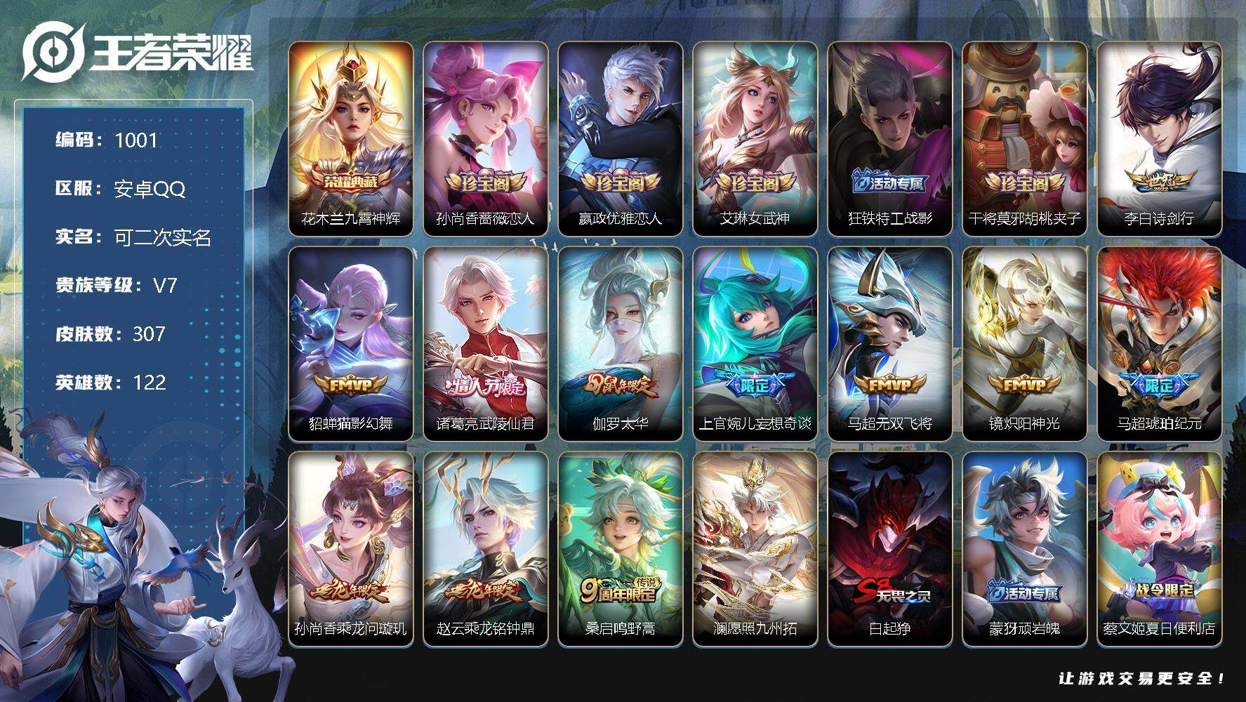 V9 2典藏 3无双 38传说 128英雄 379皮肤 可修改实名 男号