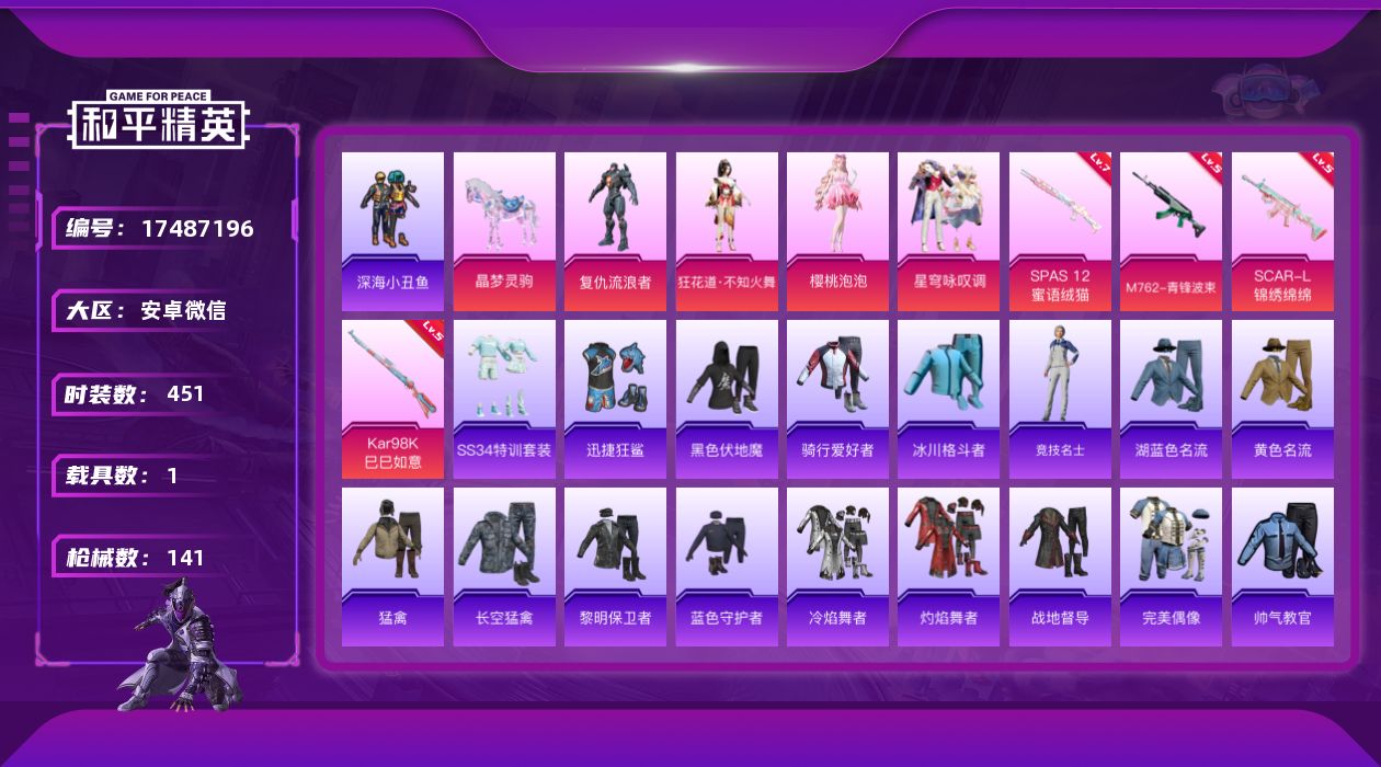 4粉装 4特效枪 1载具 9印记 可二次 可修改实名