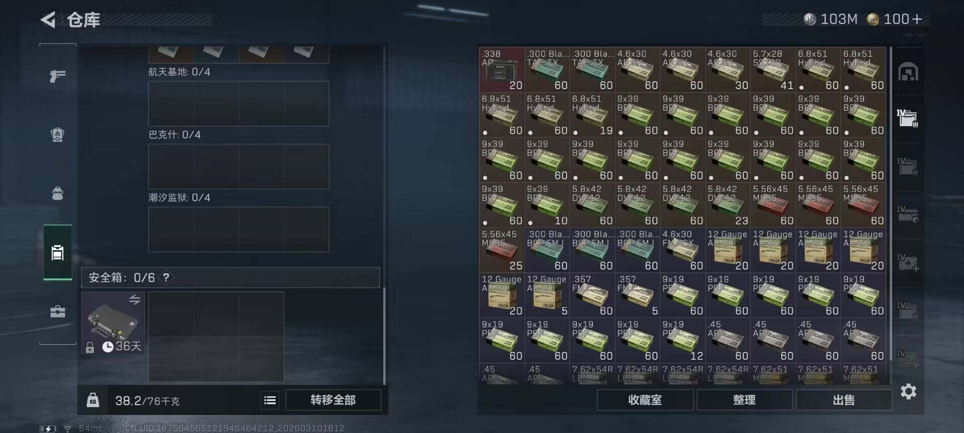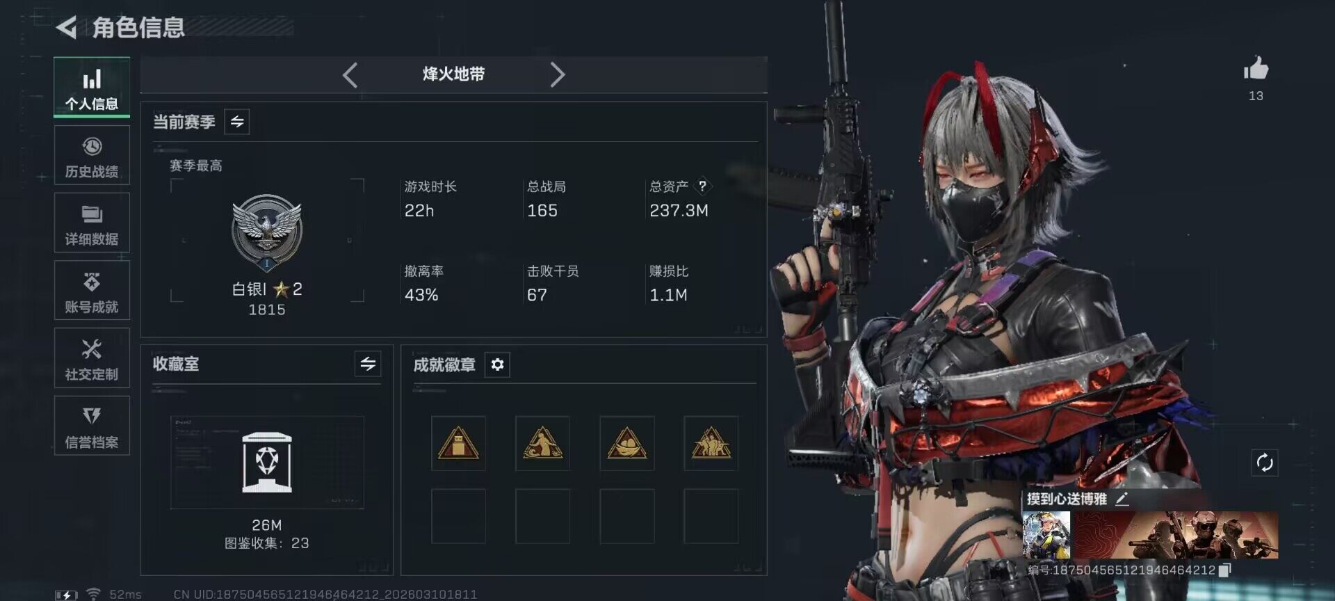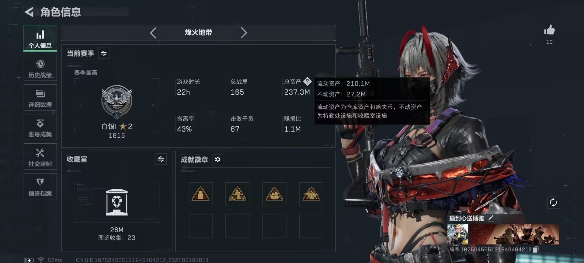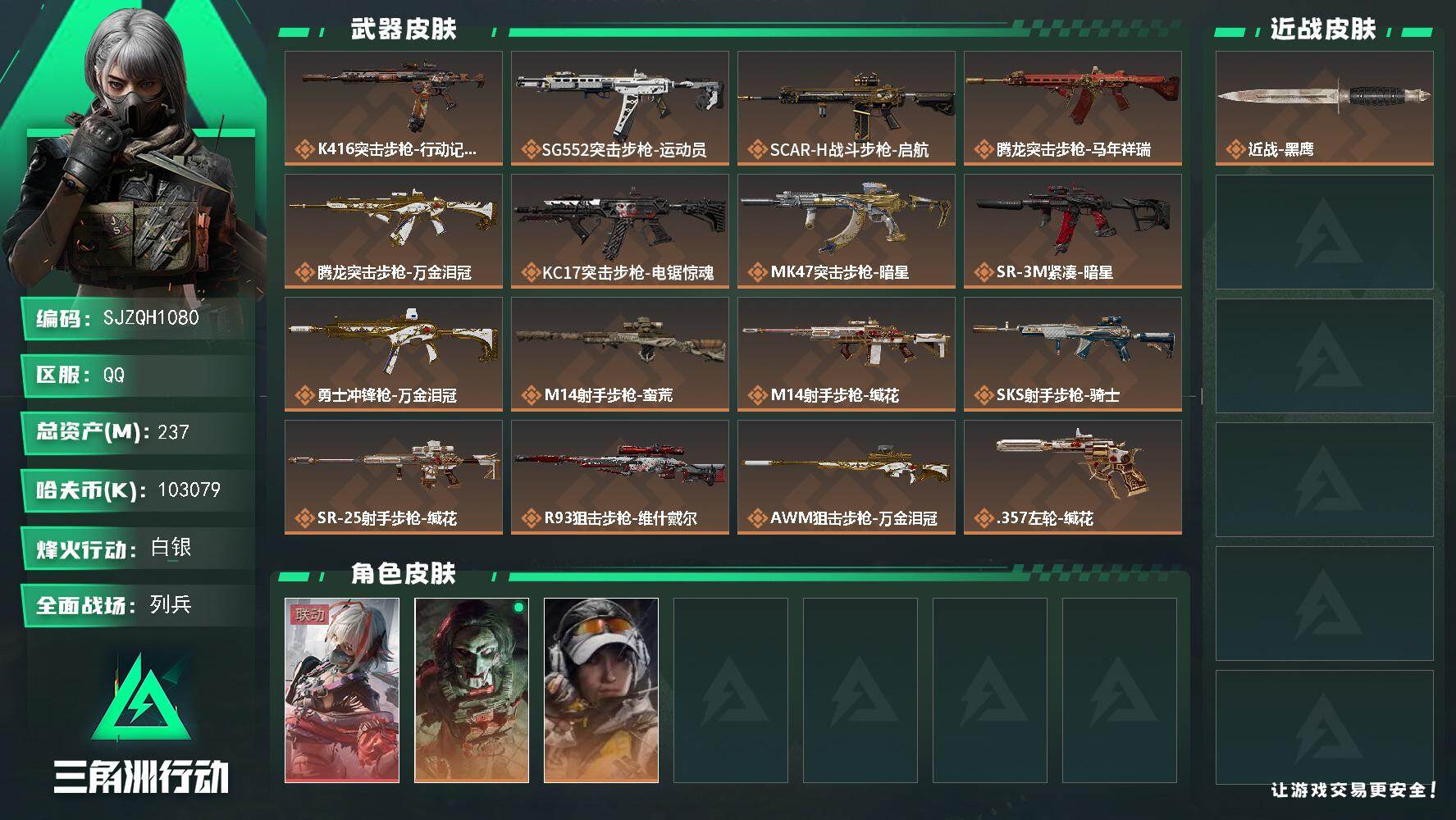 【SJZQH1080】总资产(M):237M/哈夫币(K):103079K/哈