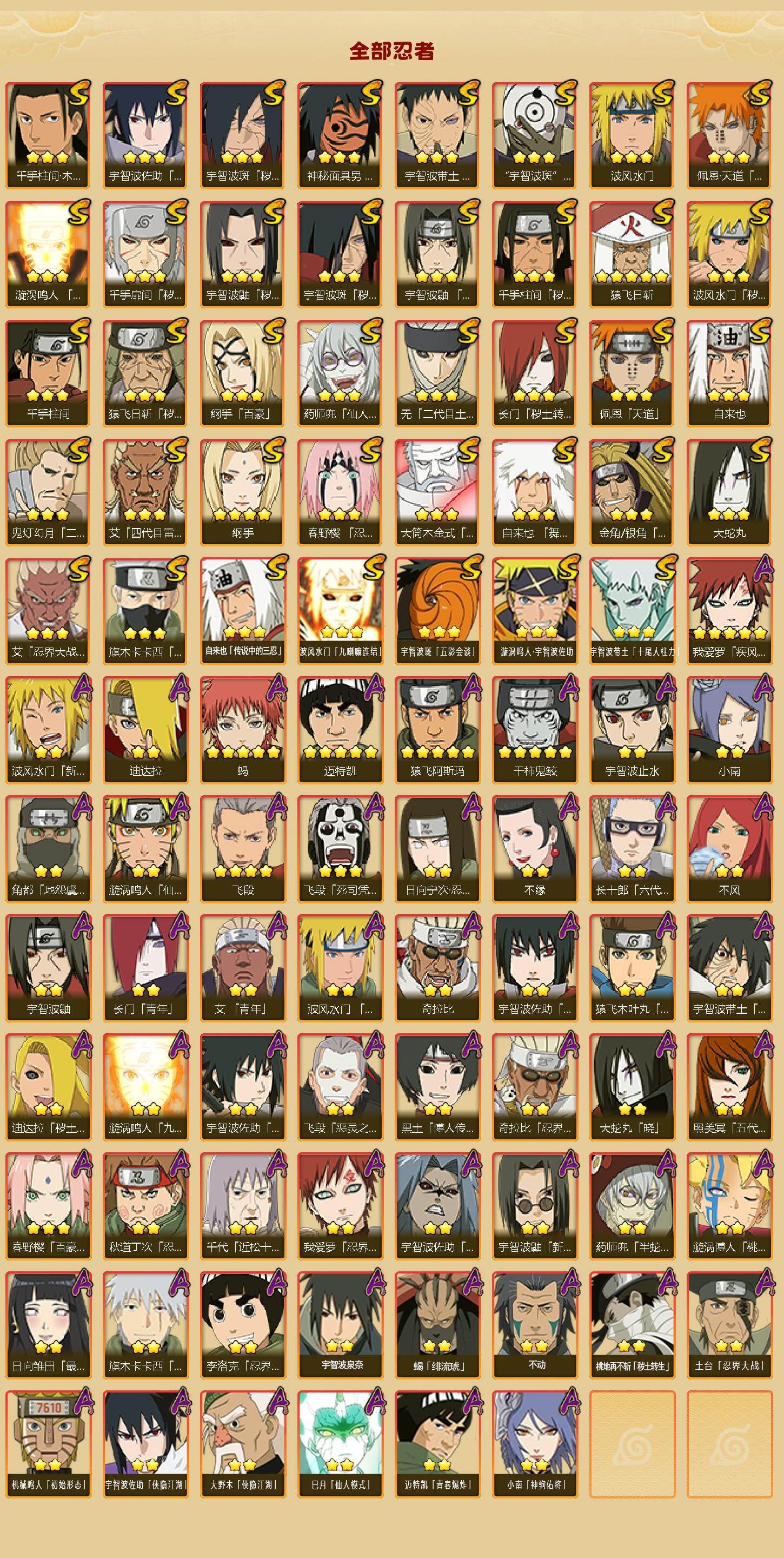 39S级忍者数-55A级忍者数仙人自来也89片 烈斗98片