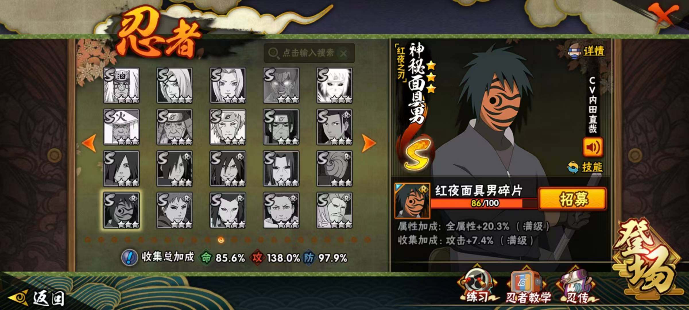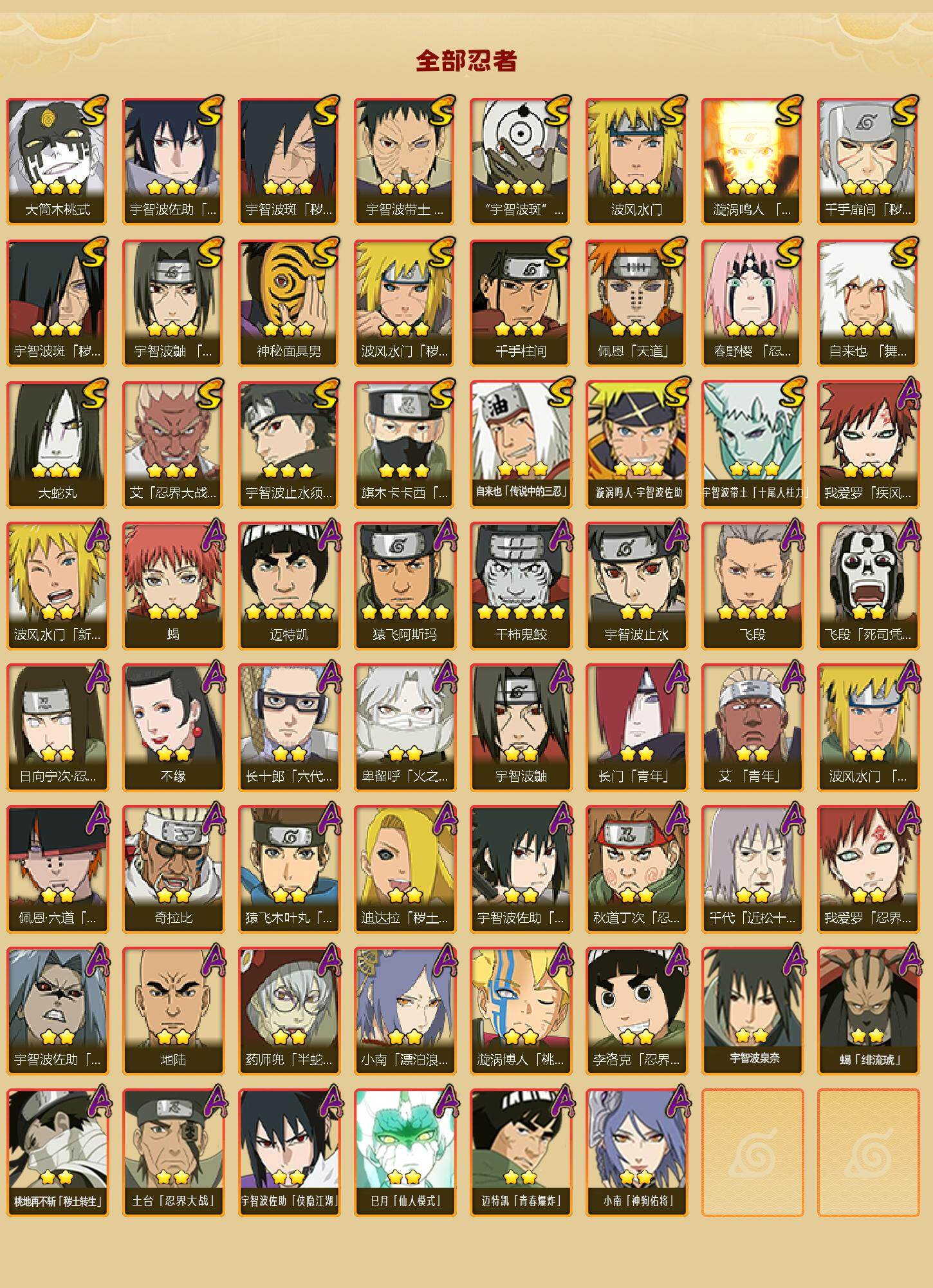 23S级忍者数-39A级忍者数自来也71片,面具男86片