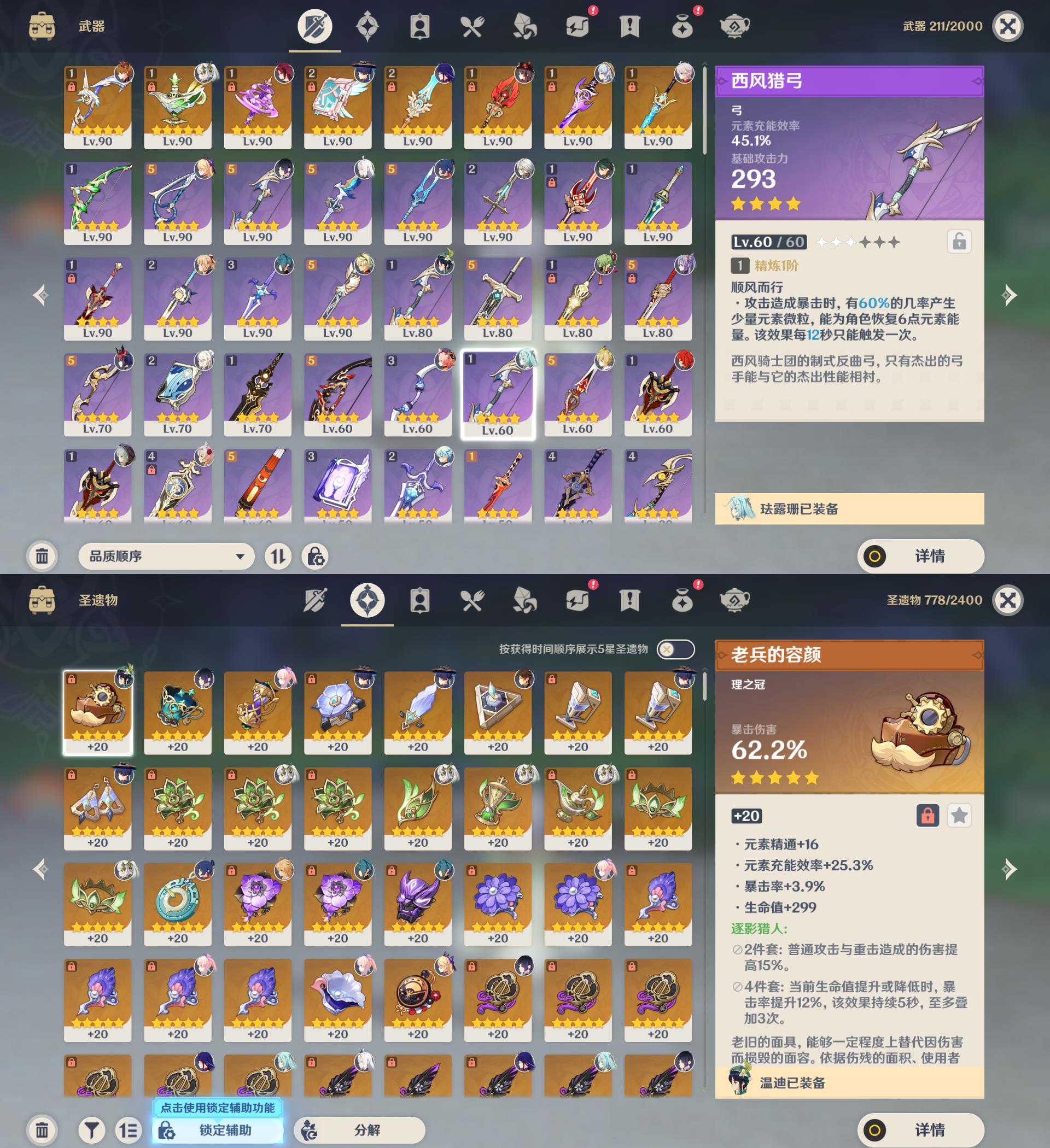 60级/36黄/女主/19个五星角色/8个五星武器/纳西妲
