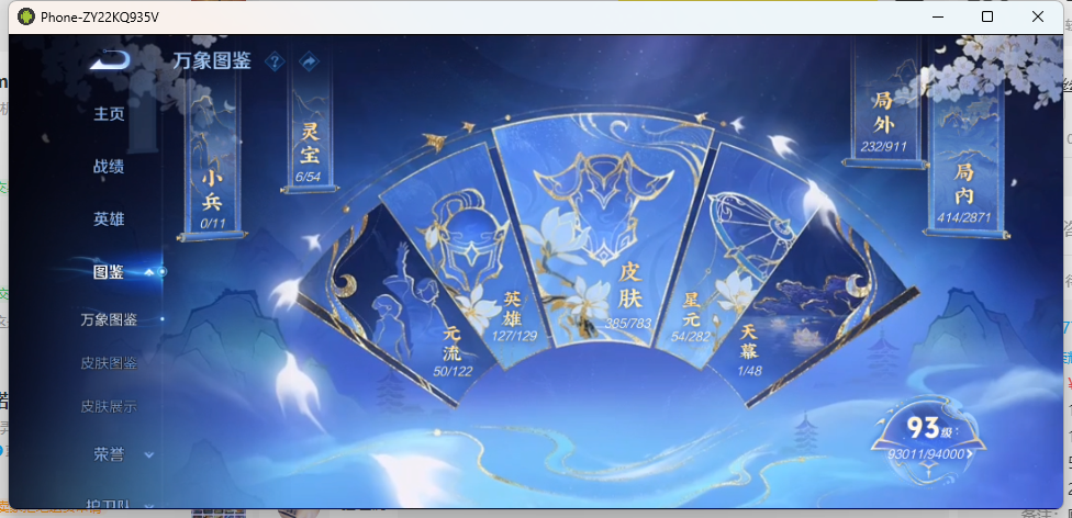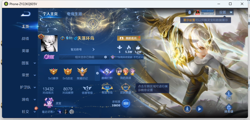 贵族等级: V9 英雄数: 127 皮肤数: 385