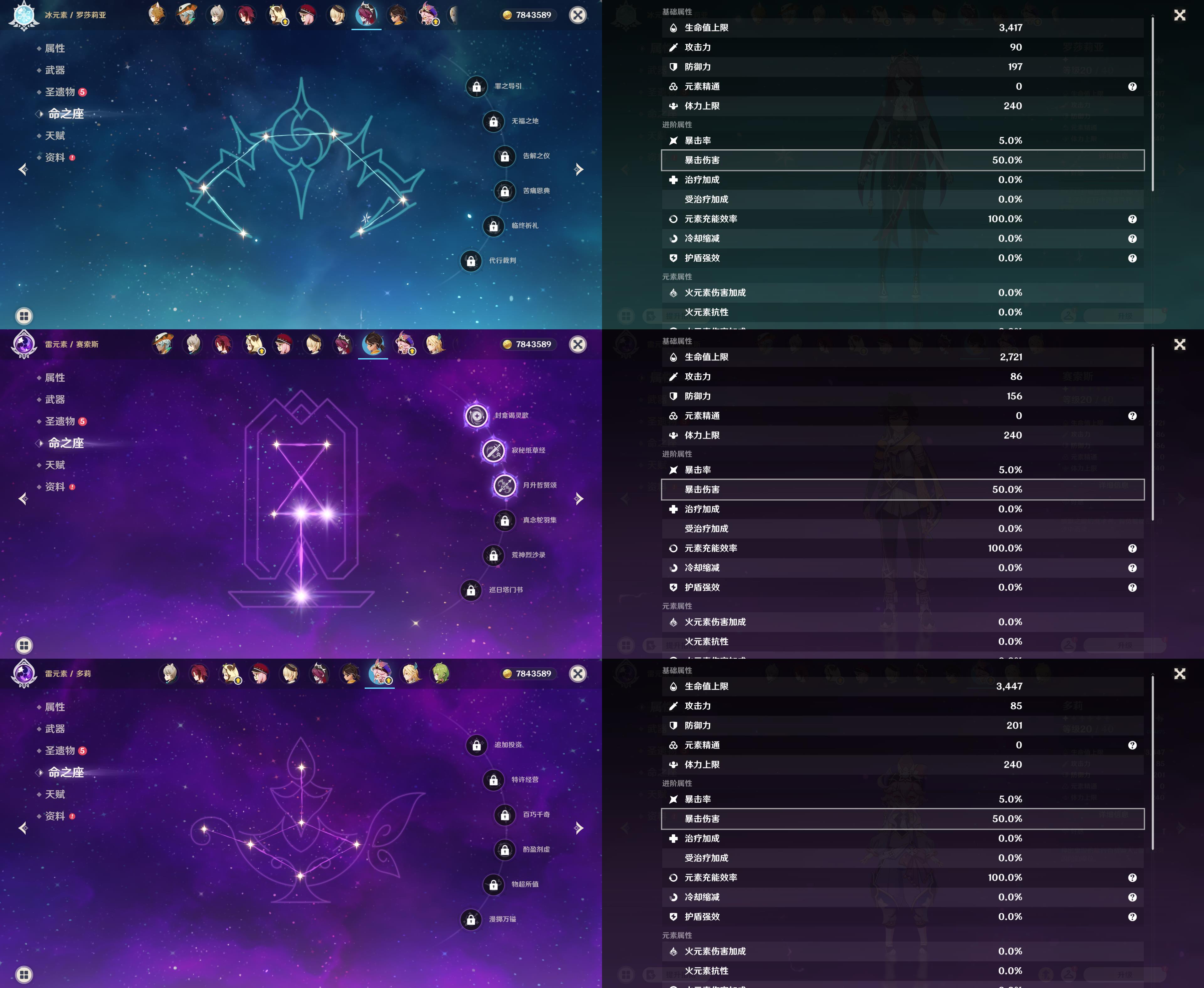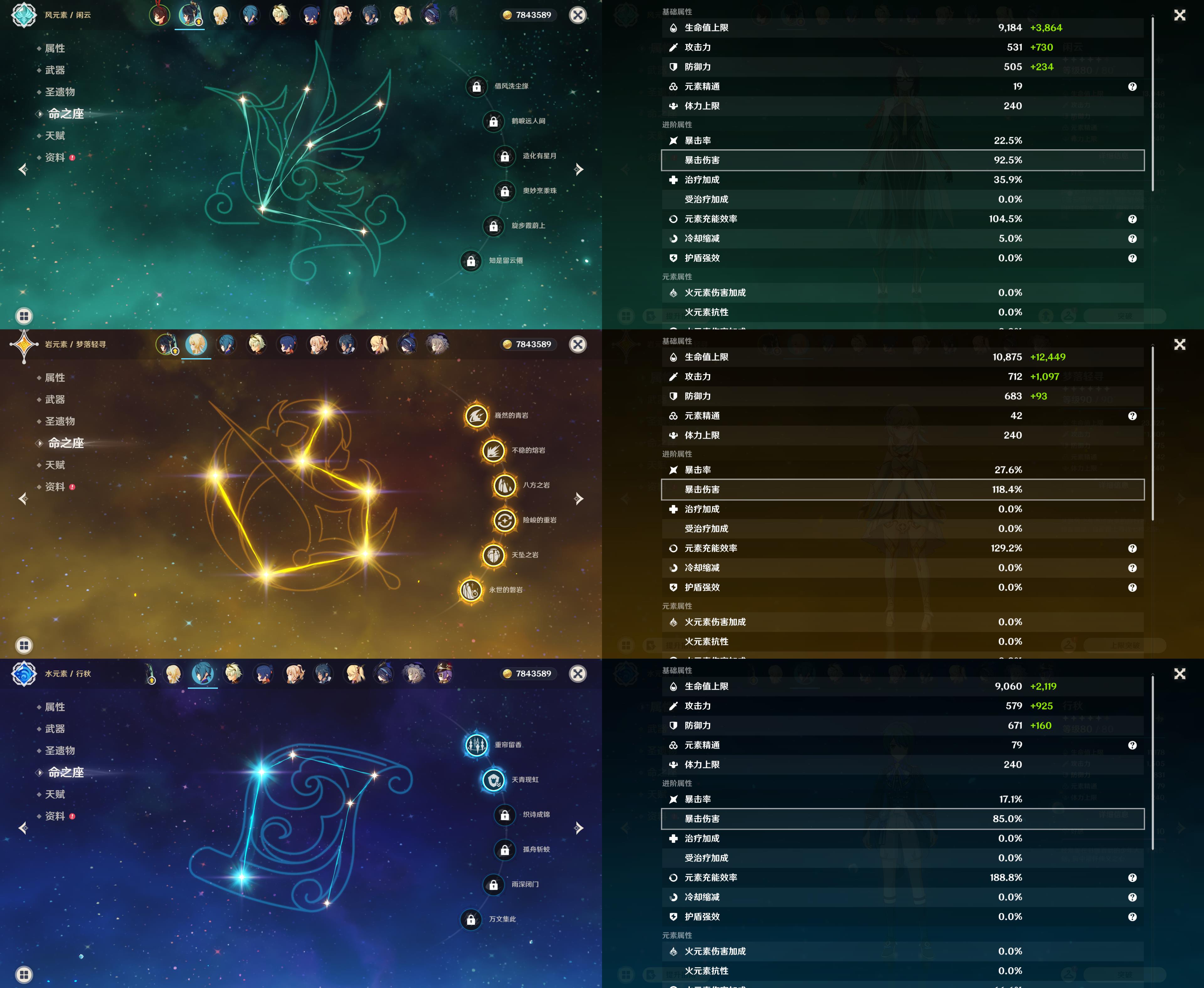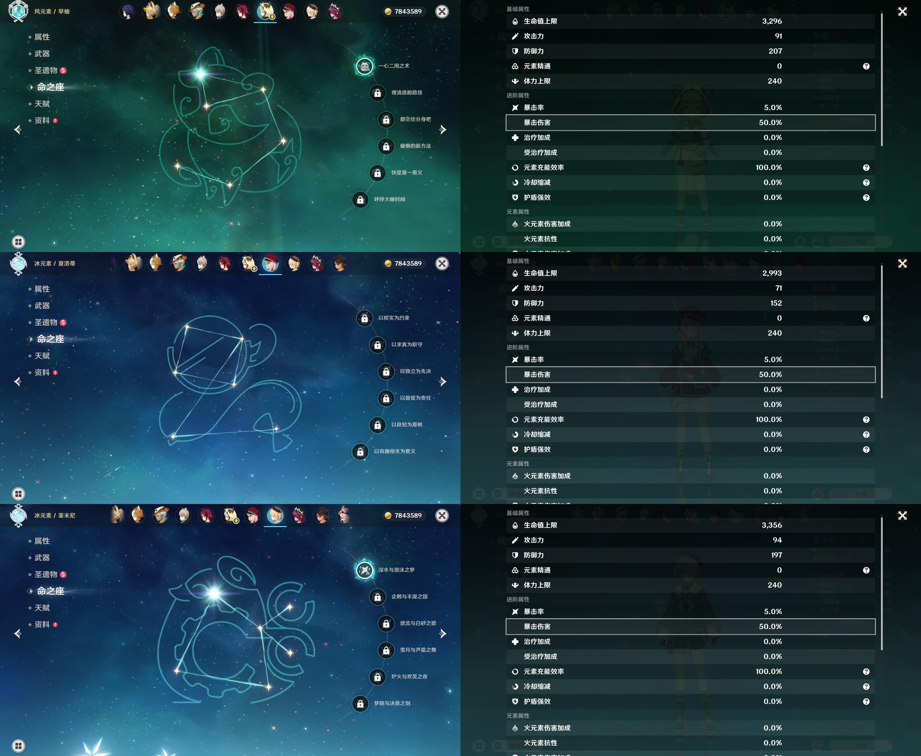 0命克洛琳德,0命闲云,0命那维莱特,0命魈,0命琴,0命梦见月瑞希,0命菲林斯,0命哥伦比娅,精1神乐之真意,精1天空之刃,精1狼的末路