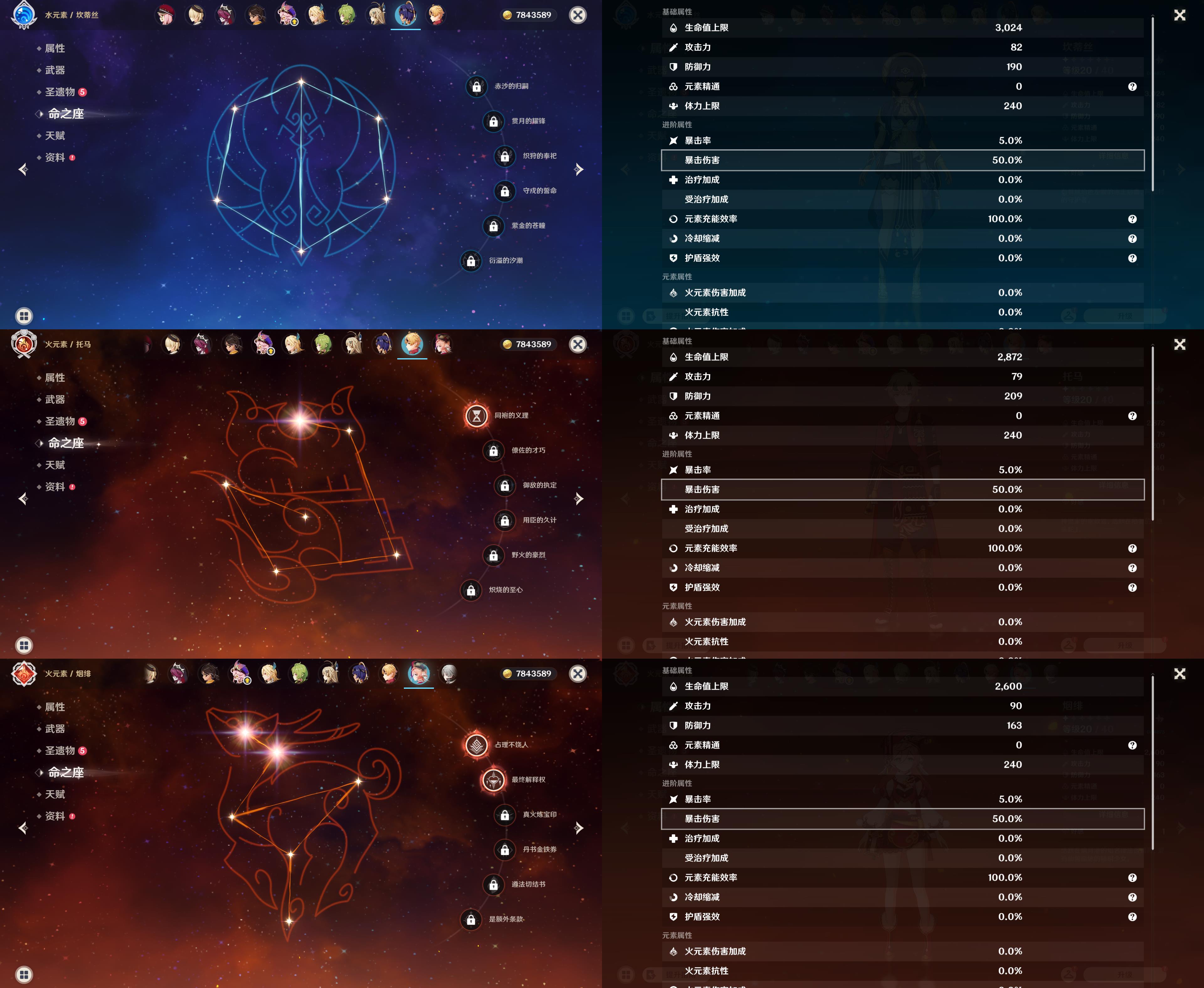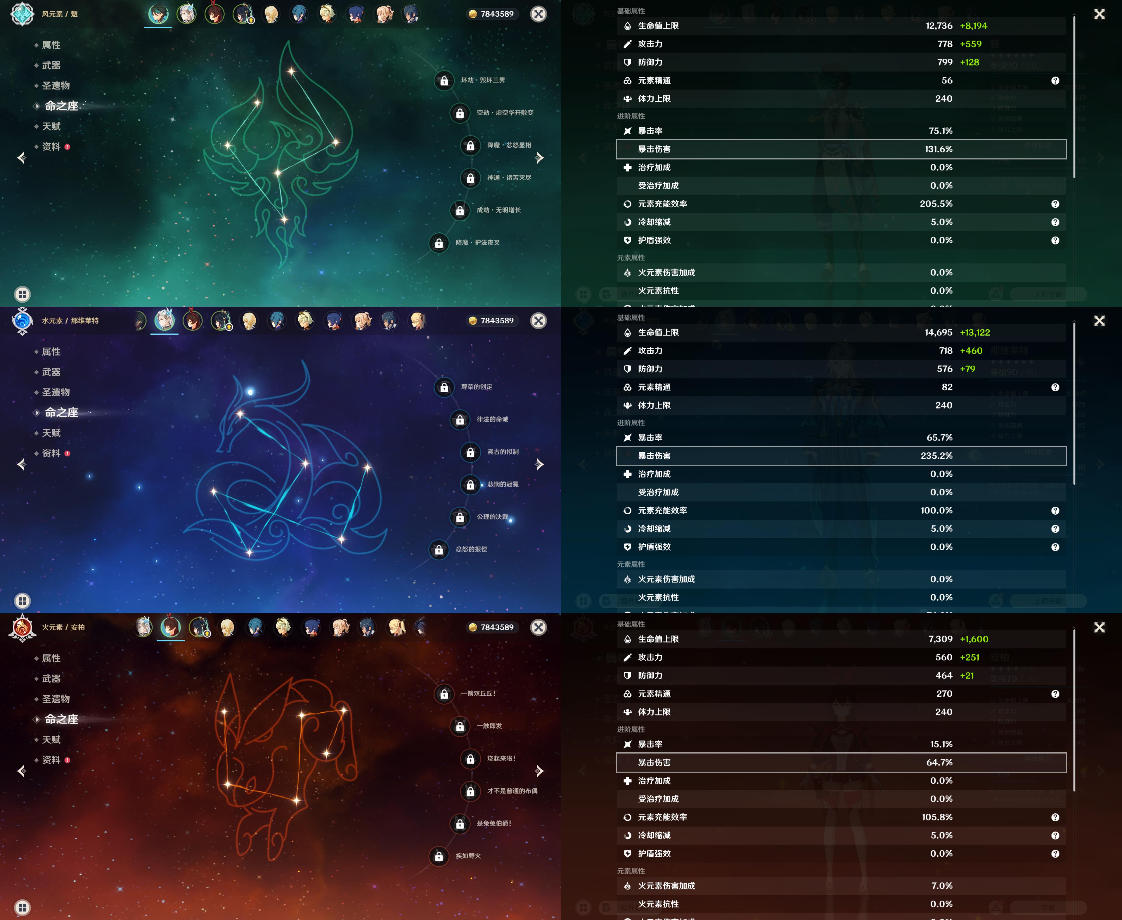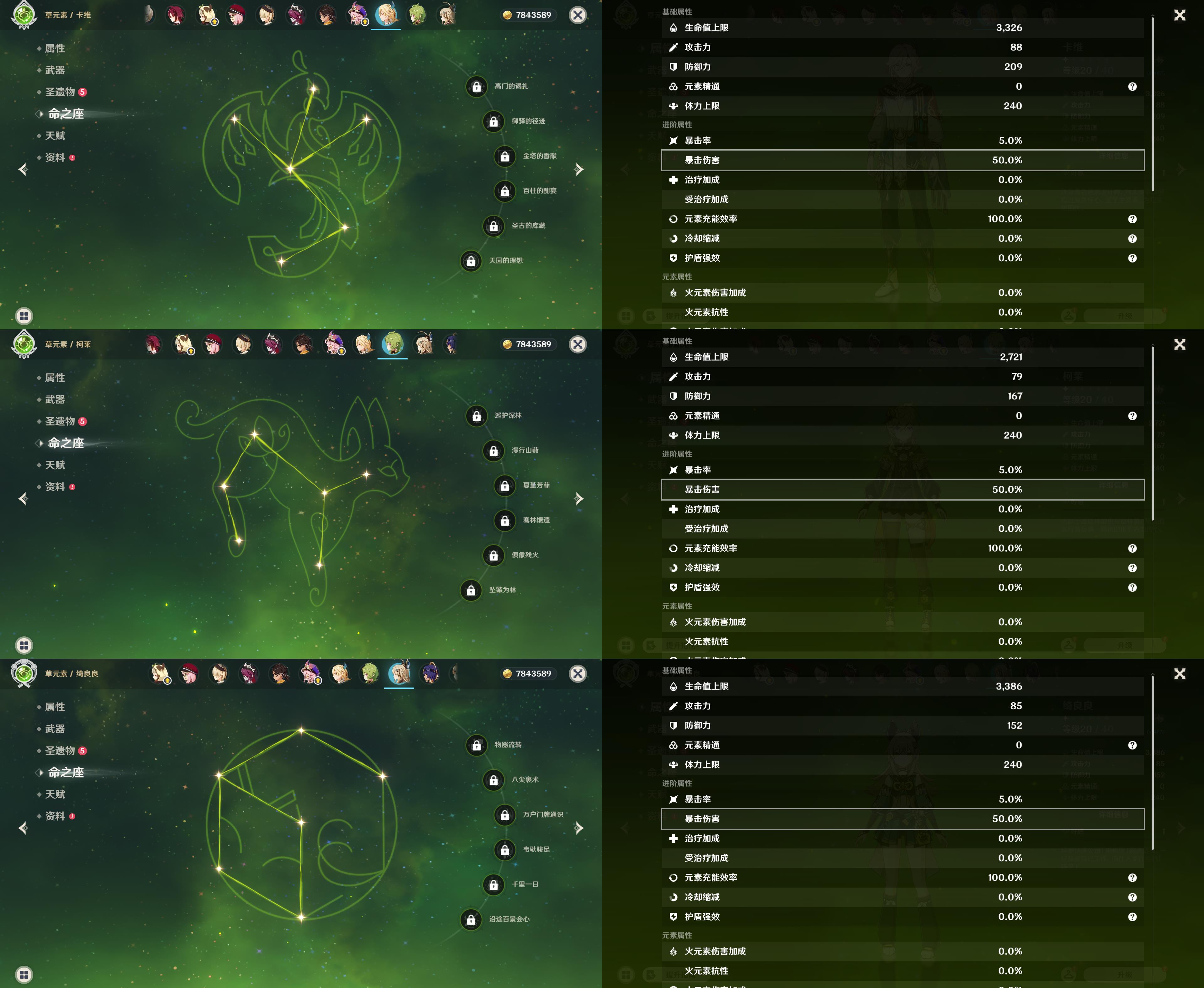 0命克洛琳德,0命闲云,0命那维莱特,0命魈,0命琴,0命梦见月瑞希,0命菲林斯,0命哥伦比娅,精1神乐之真意,精1天空之刃,精1狼的末路