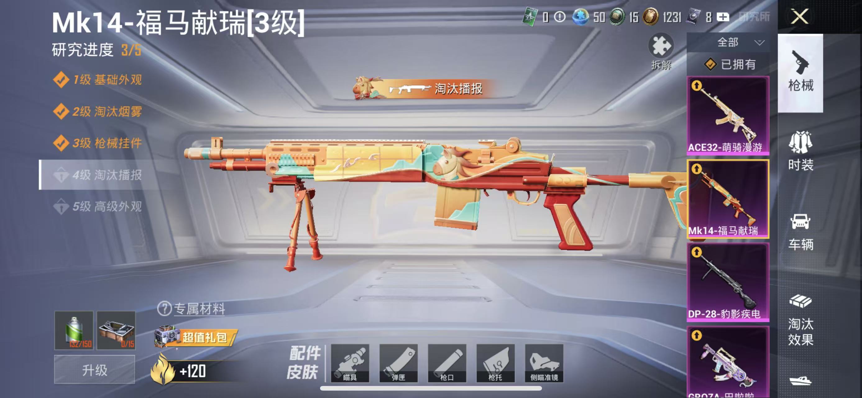 10粉装-7特效枪-127套装-179枪皮-8王牌印记-超级王牌1星-57523热力值