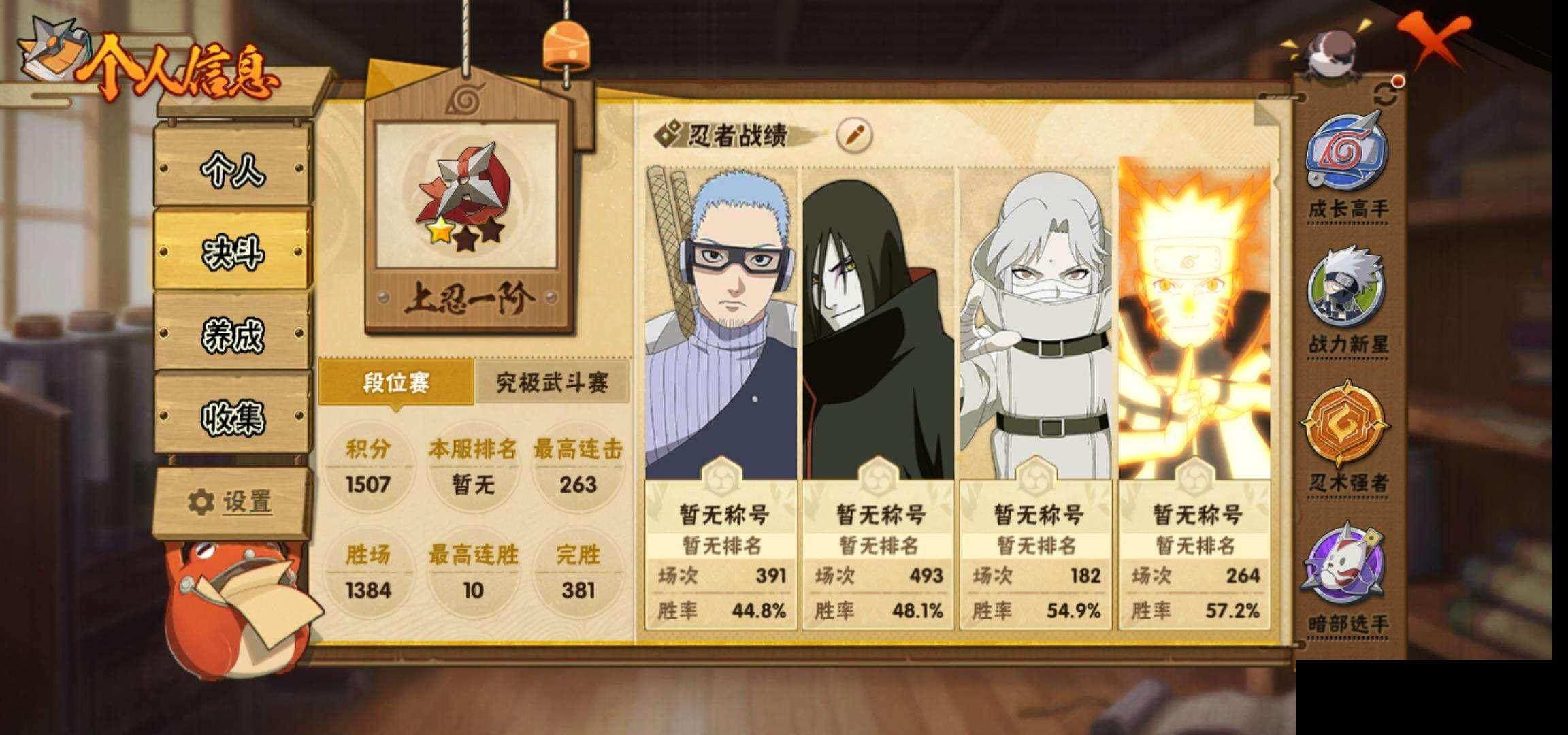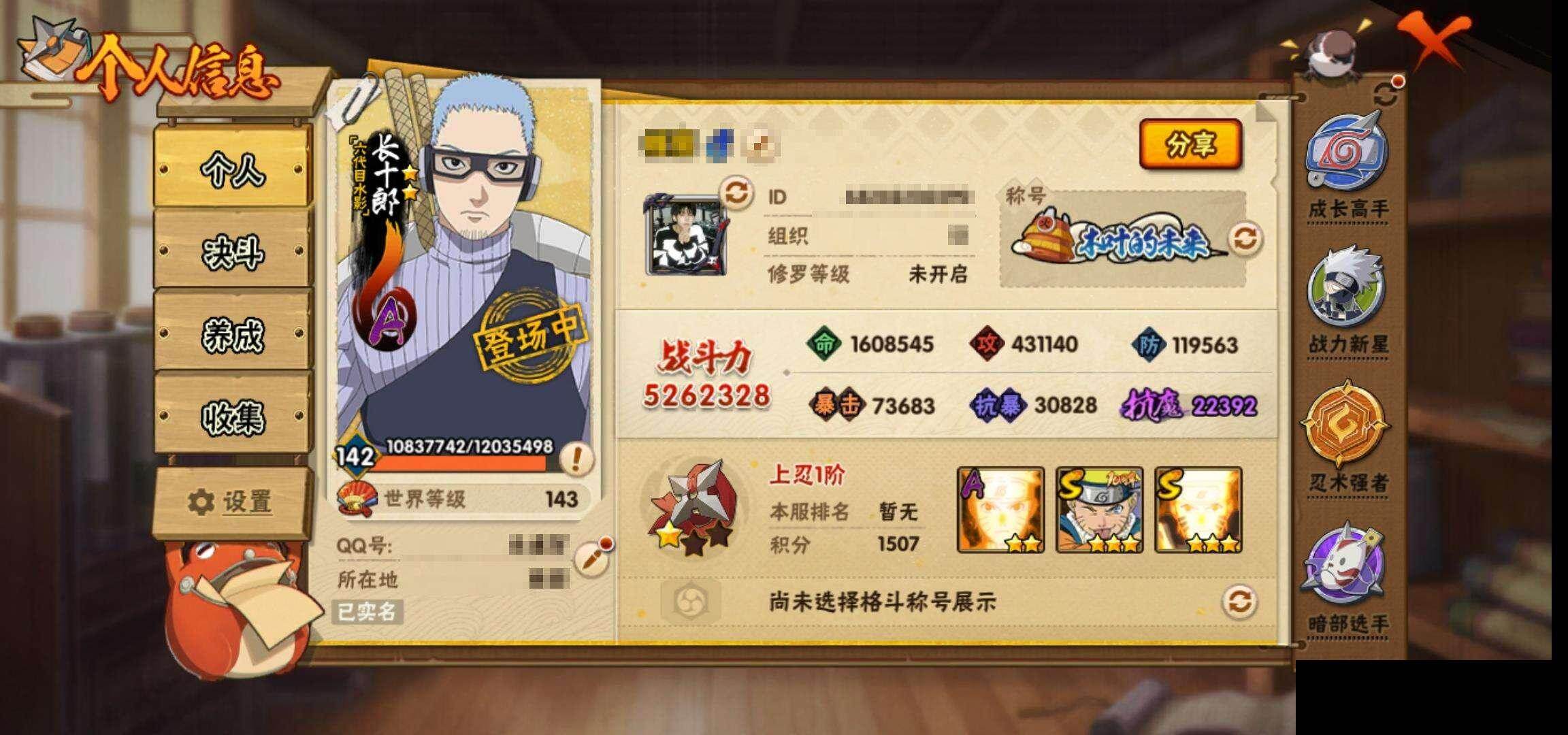 【VIP等级】7 【战力值】526W 【段位】上忍1阶