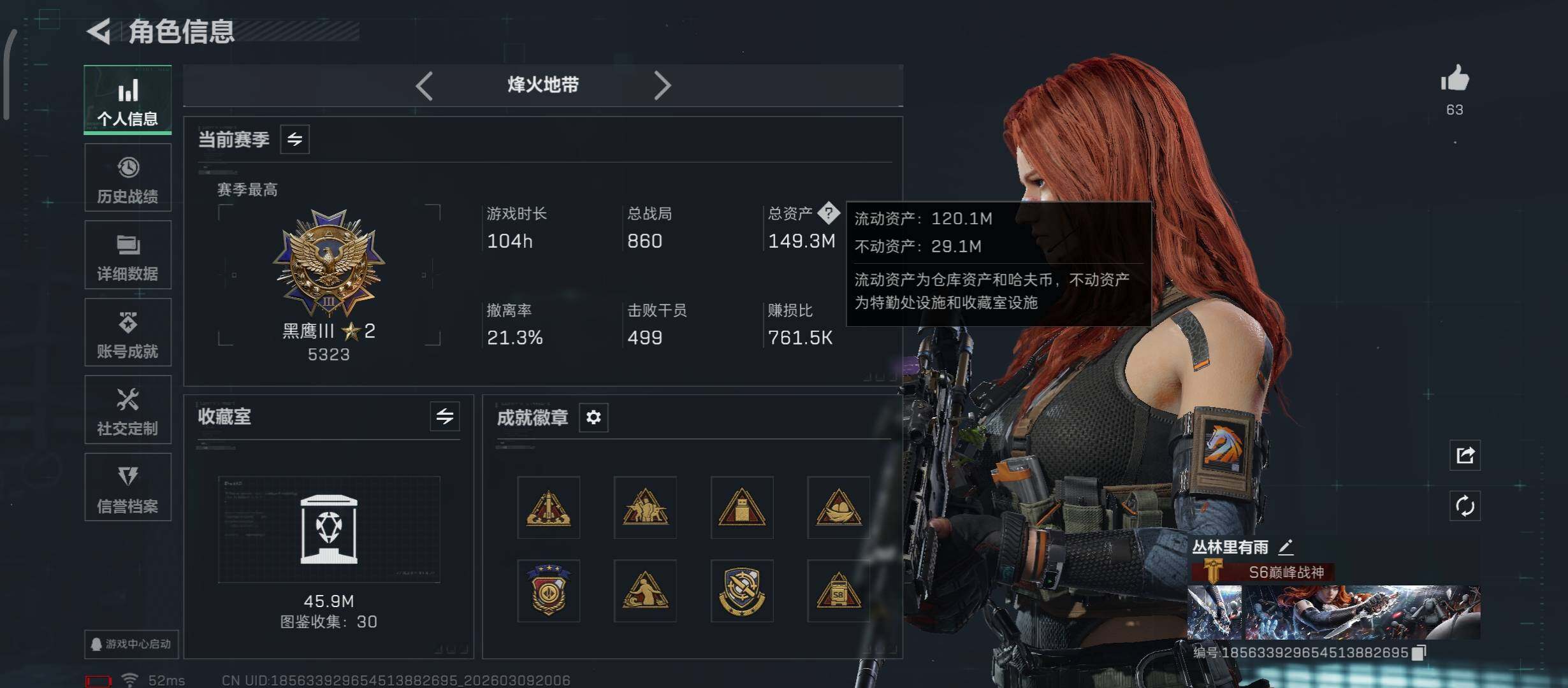 【热门双刀皮号-单联动红皮,信条+影锋+处刑者+维什戴尔】【无二次】YXz9085-特勤处:仓库7级/靶场6级/训练中心6级-149m总资产-500w哈伏币-60烽火等级-黑鹰-25战场等级-军士长