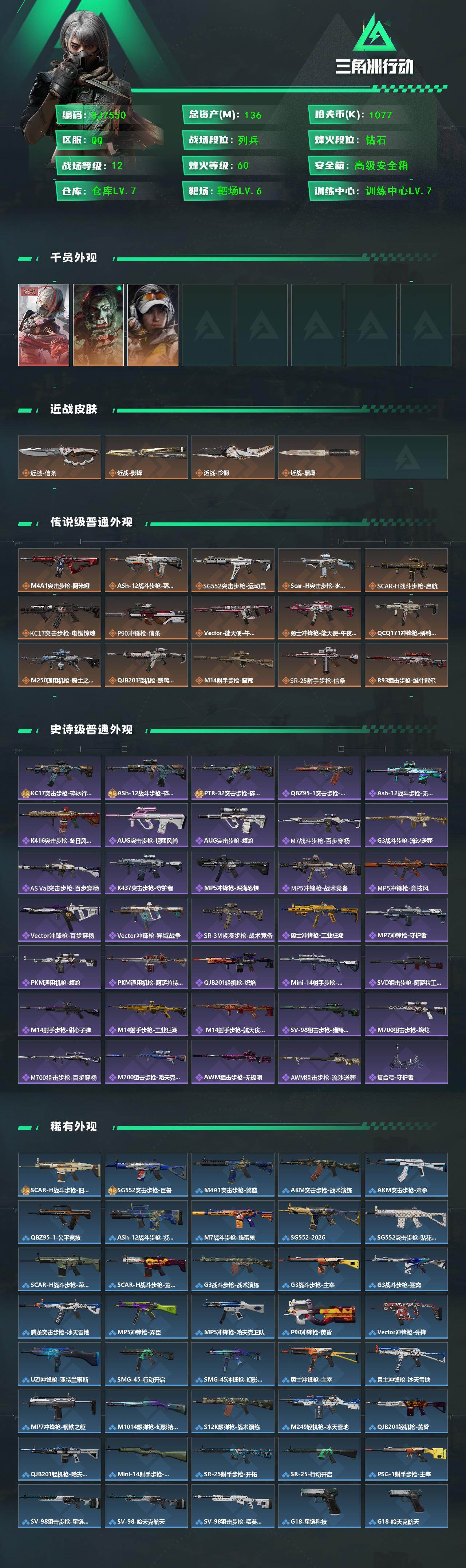 136m总资产-1077k哈伏币-60烽火等级-钻石-12战场等级-列兵