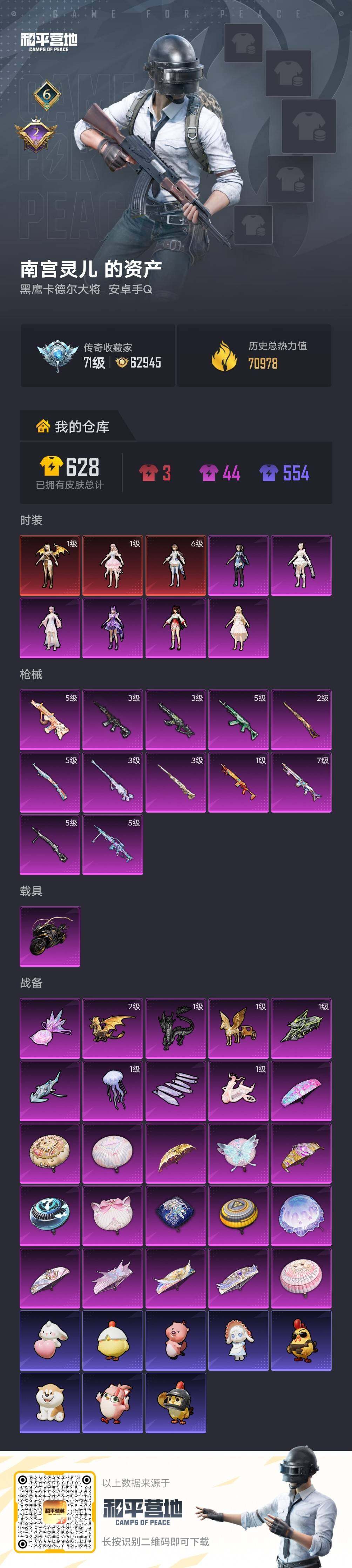 【特价出售/店主推荐】 镜域双华-欧若拉(六级) 安卓 手Q-3神装-6粉装-12特效枪-1载具-9粉色飞行器-7w热力值-6王牌印记-94套装-174枪皮【红色神装等级】:圣域龙灵-瑞拉(一级),梦海之灵-妮芮妲(一级),镜域双华-欧若拉(六级)【热门品类】:套装-六号树人,套装-龟仙人【粉色套装】:角色-小可学妹,角色-小叽联名款,角色-烟云彩露,角色-严莉莉,角色-千金淑猫,角色-脆鲨七海【粉色枪皮等级】:AKM-幽焰骑士(三级),M416-墨龙九天(三级),AUG-暖羊咩咩(五级),M7