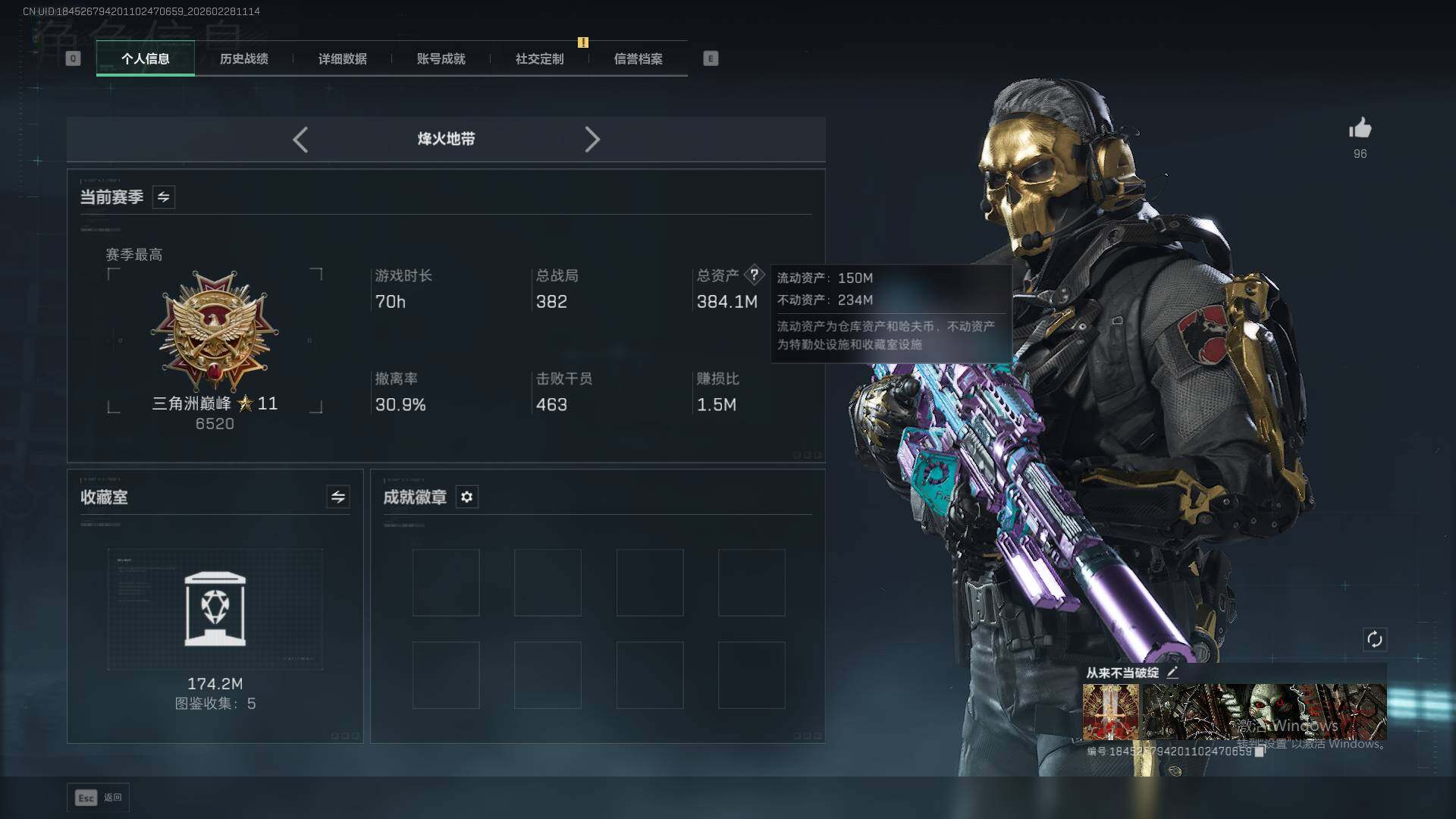 383m总资产-1160k哈伏币-60烽火等级-三角洲巅峰-50战场等级