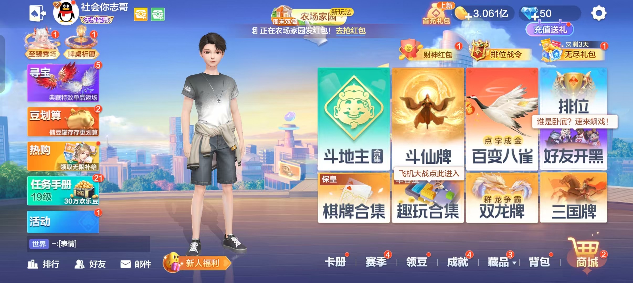 纯手打安卓Q欢乐斗地主3亿豆账号便宜出手