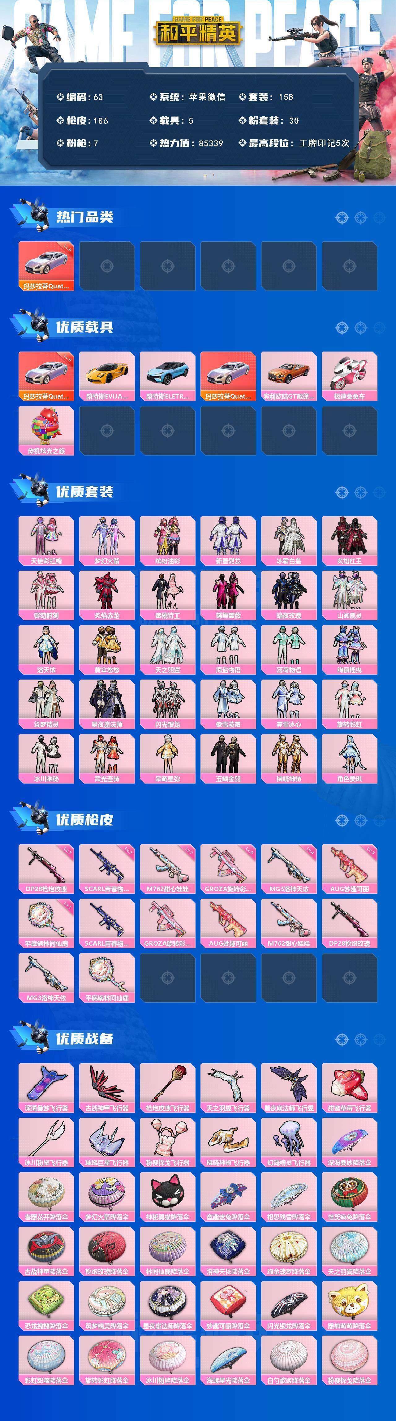 XS299【满级玛莎极品身法号30粉7特6车3特 满级玛莎拉蒂幻星粉 缤纷油彩(猪妹)梦幻火箭 洛天依 兔兔白日梦 小丑鱼】苹果V-85077热力值 5王牌印记 历史传奇王牌10星 155套装 186枪皮 【6载具】 玛莎拉蒂Q幻星粉 (6级) 路特斯EL蓝色 宾利欧陆GT火焰橘 路特斯EV黄色 极速兔兔车 炫光之旅僚机 【30粉装】 梦幻火箭 美琪 天使彩虹糖 洛天依 拂晓神骑 呆萌星弥 玉鳞金羽 闪光银龙 缤纷油彩 筑梦精灵 绚丽摇曳 新星烈龙 冰川幽秘 冰霜白皇 星夜魔法师 炙焰红王 霁雪
