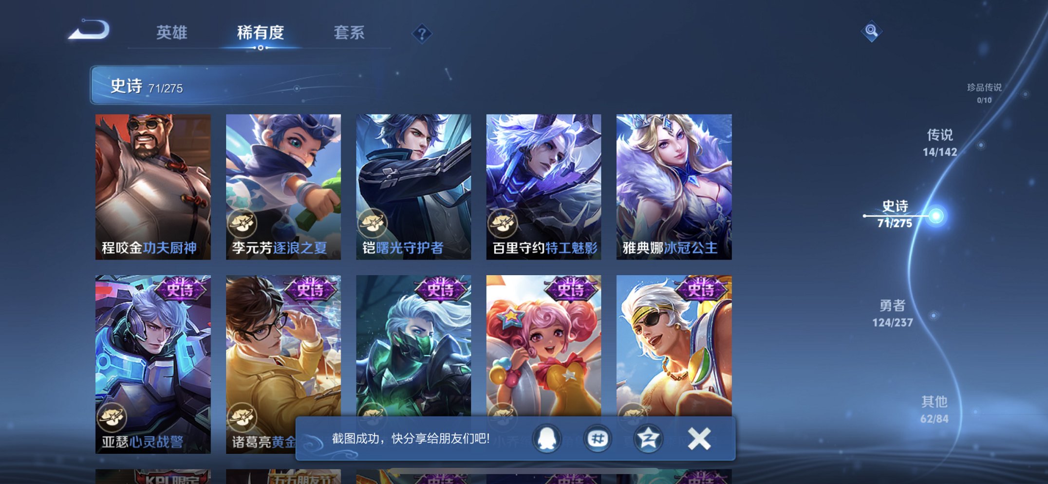 打野41段2无双14传说274皮肤1水晶2星元3金标