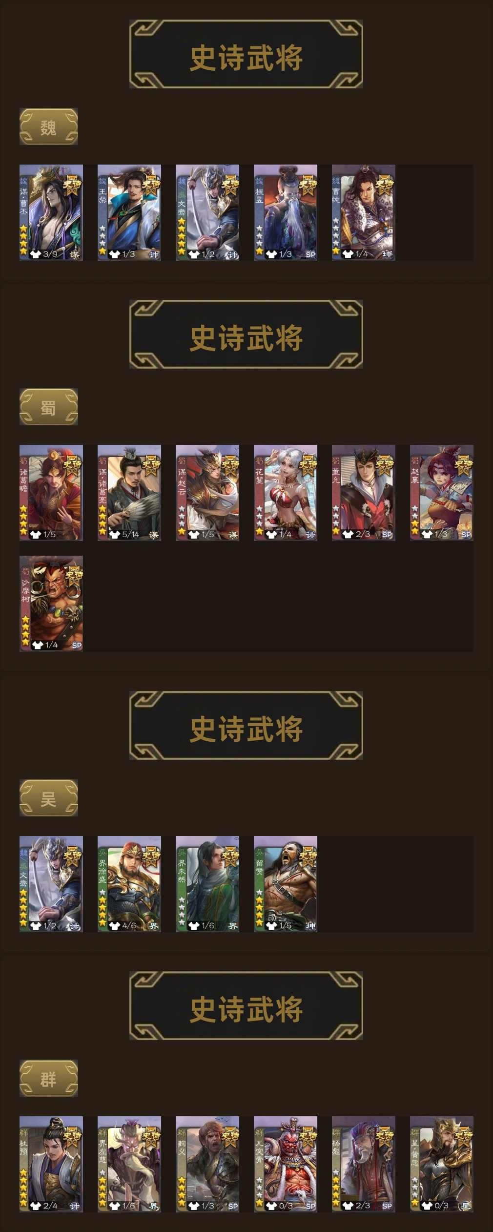 史诗武将数量: