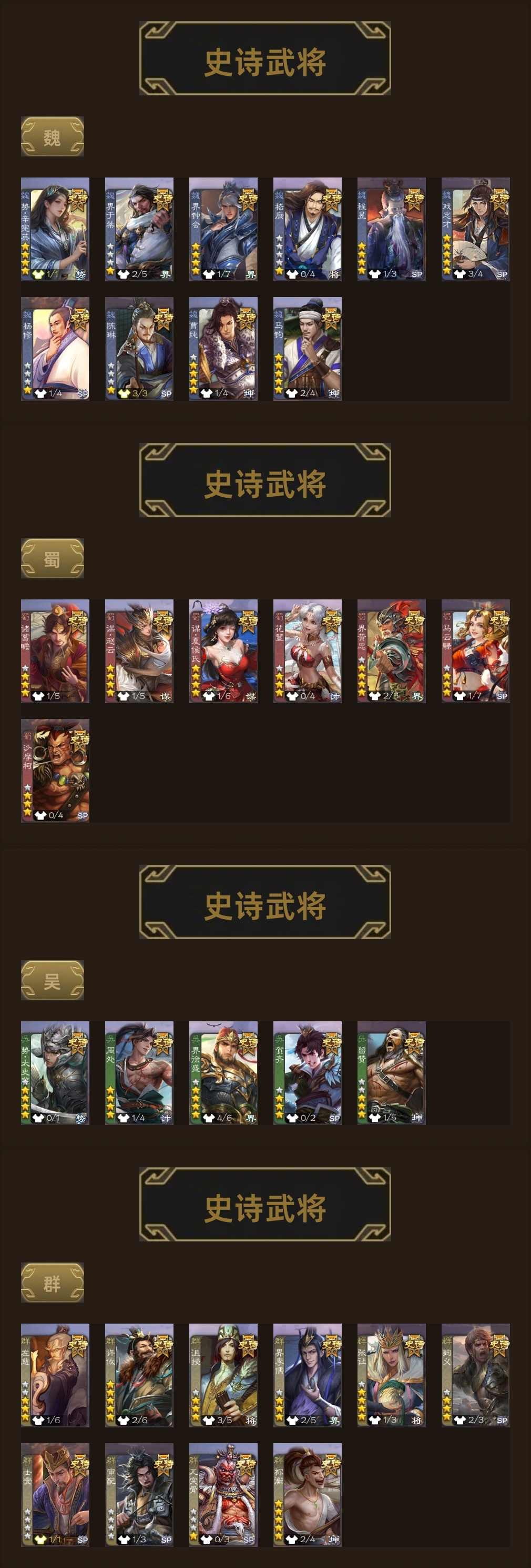 史诗武将数量: