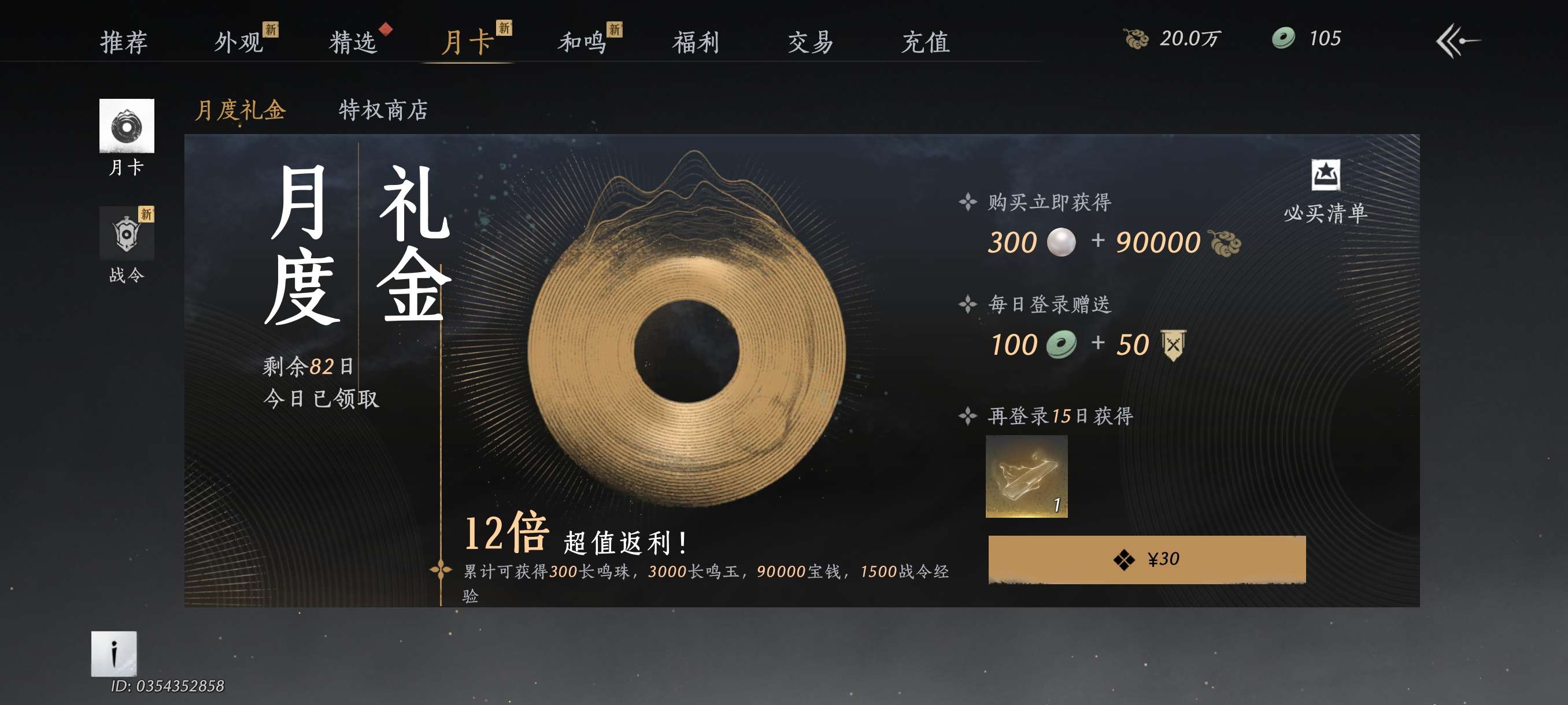 还有82天月卡