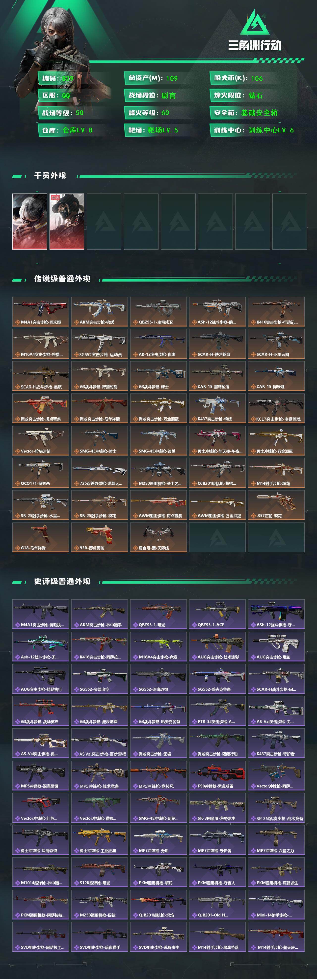 109m总资产-1068k哈伏币-60烽火等级-钻石-50战场等级-尉官【干