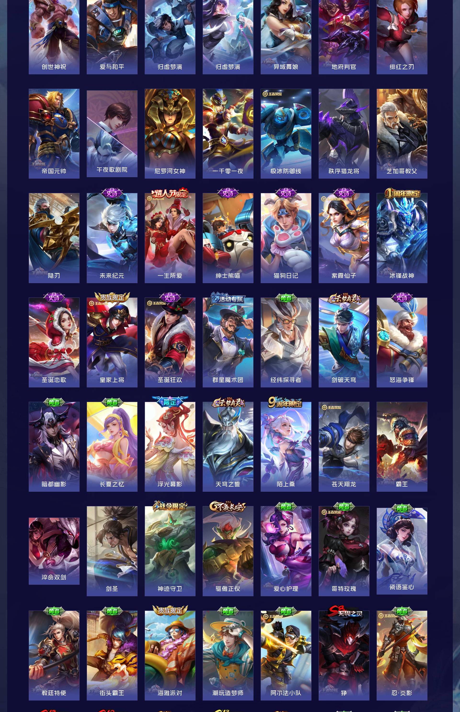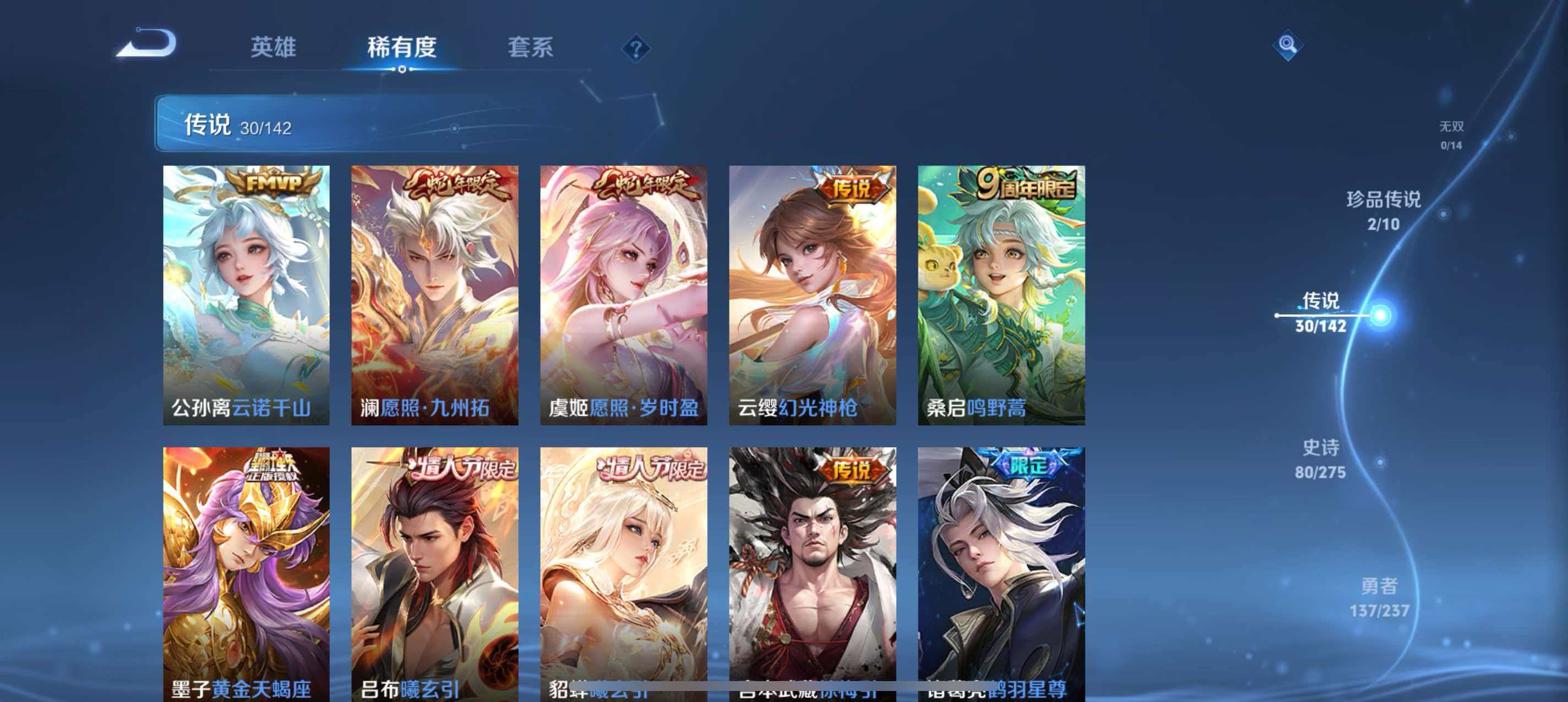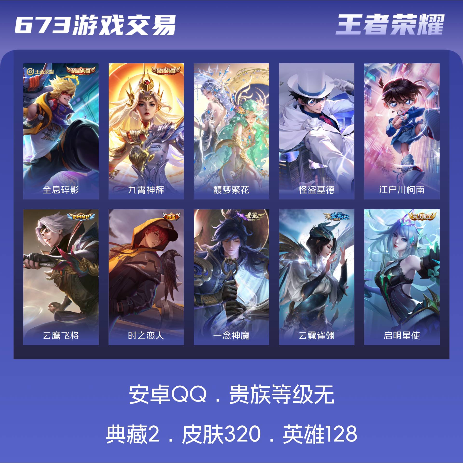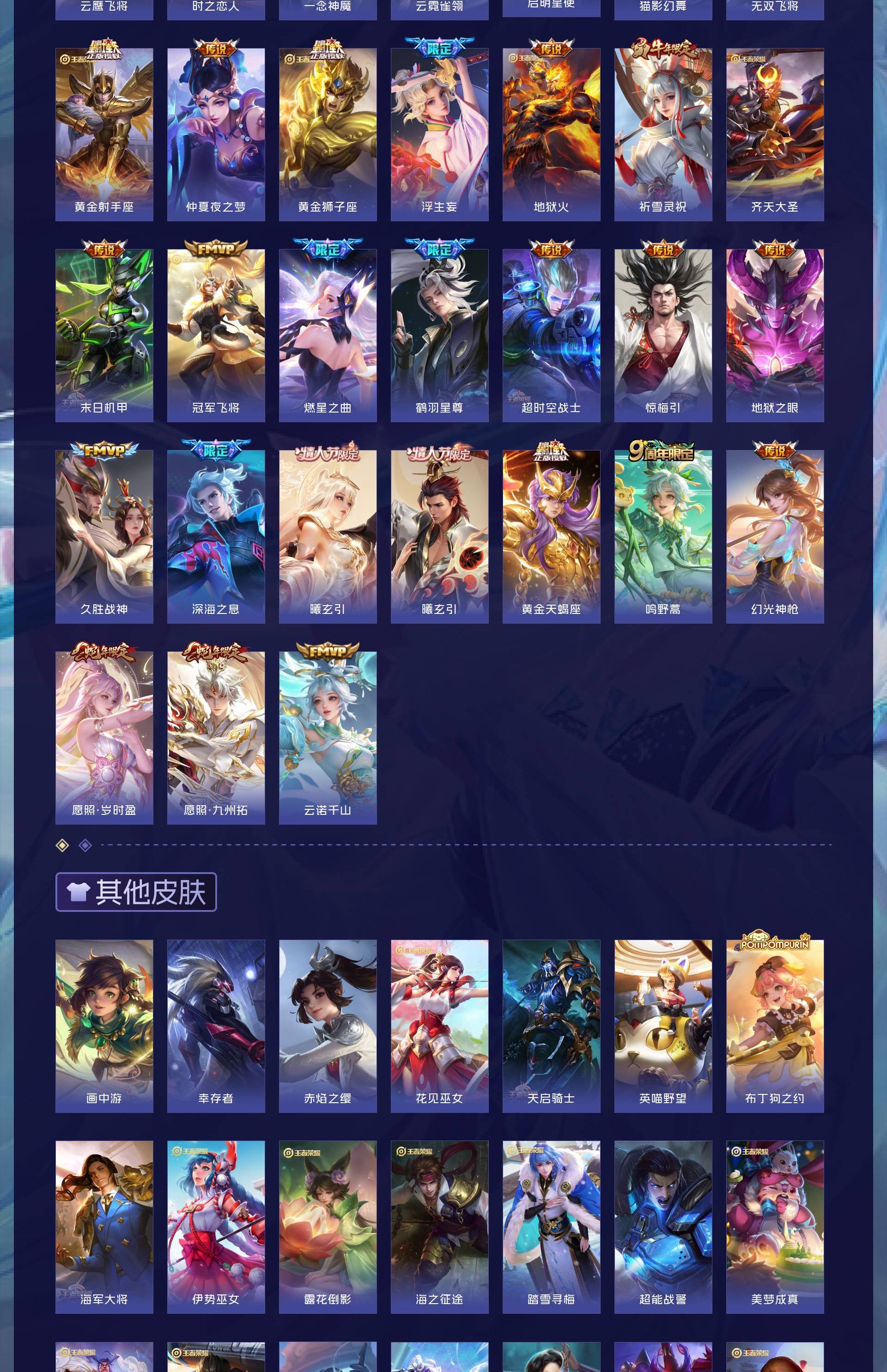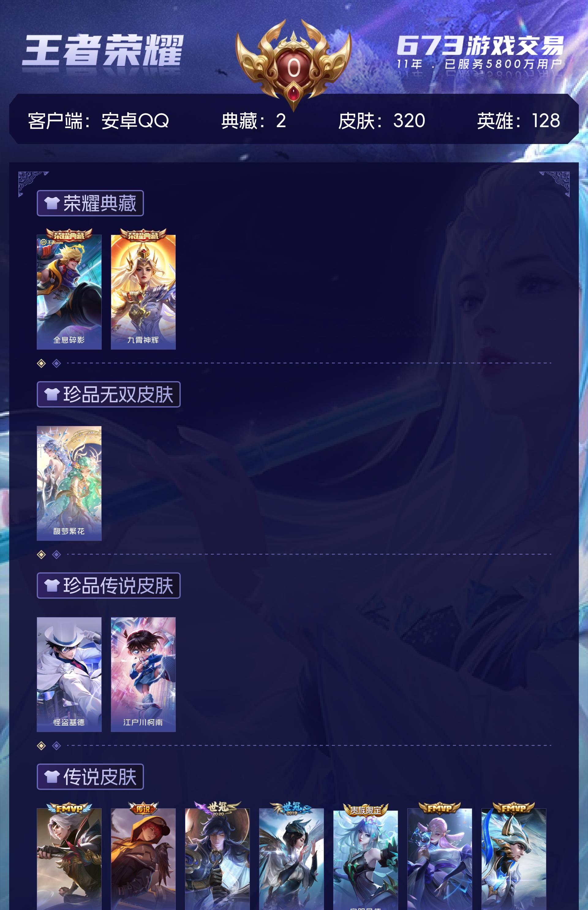 皮肤320 英雄128 至尊星耀 荣耀典藏2 珍品无双1 珍品传说2 传说31 其他皮肤292-精品账号